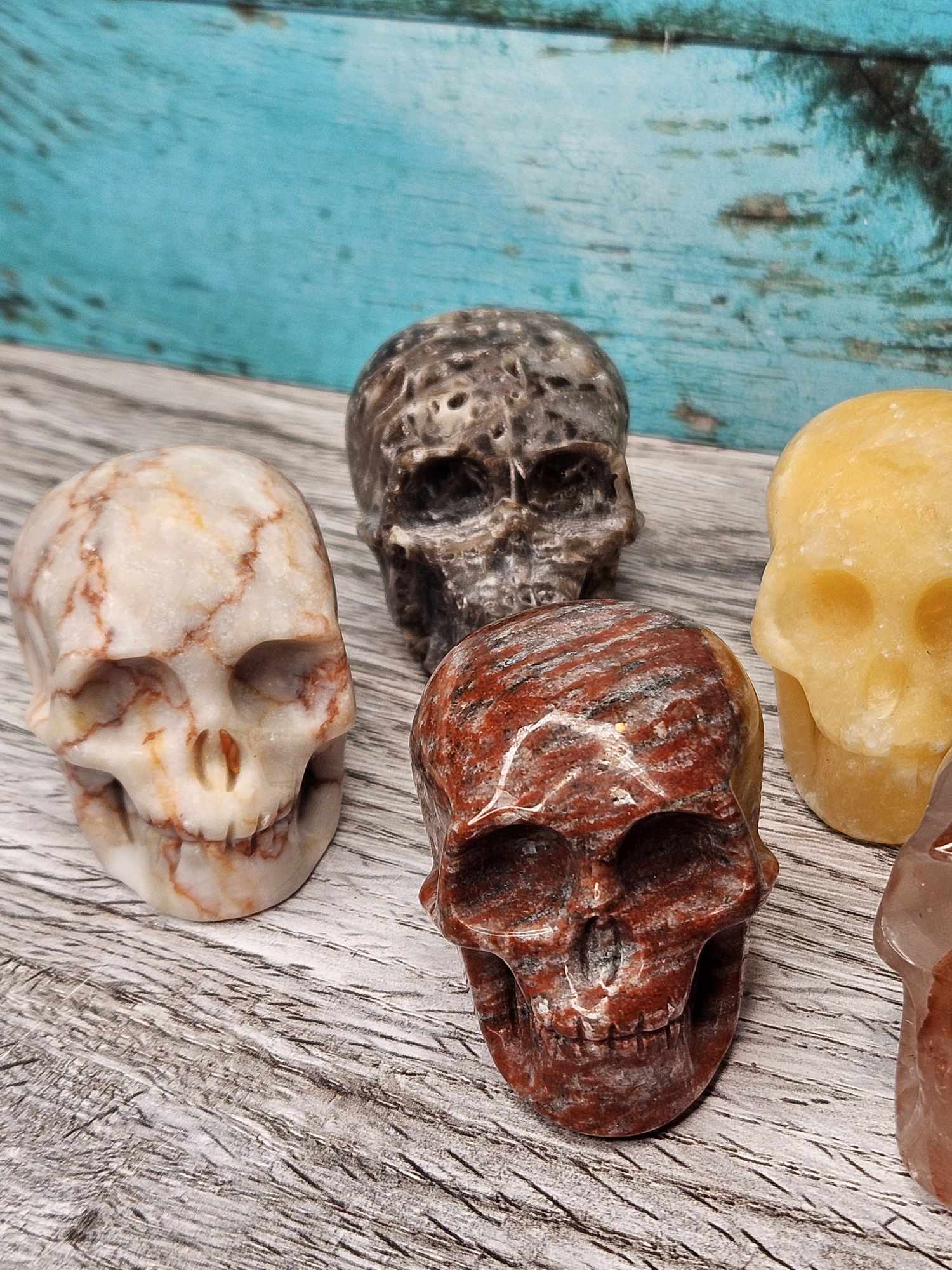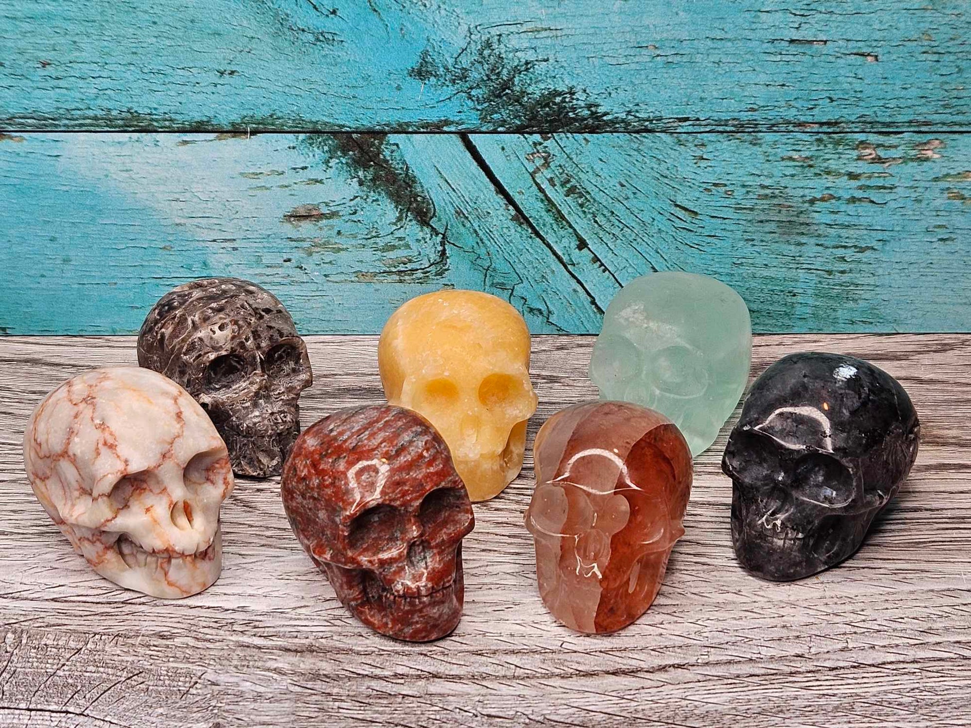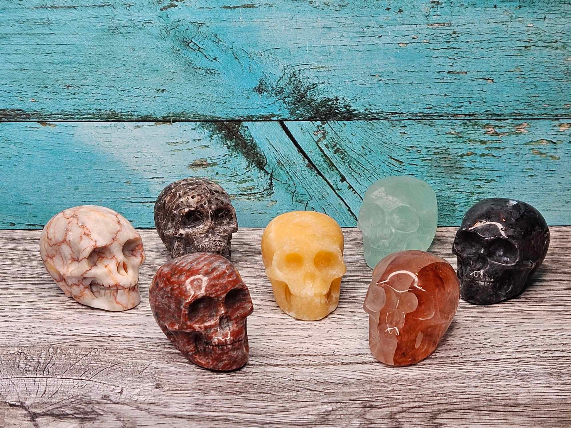 These skulls come in a variety of different crystals which will be intuitively channeled and chosen for you specifically. I will include a note on your packing slip as to which crystal skull you’ve received so you can see how that healing magic gets absorbed by your sweet skull baby. Skulls are positive symbols of protection and the human experience. A skull in a healing spell provides healing to the mind, the body and the spirit because the skull represents all three. These skulls will bring big magic to the spell table by directing the spell to integrate through your spirit and into your physical form. They will then carry that energy and all those good juicy healing vibes right to you and your world. Helpful for mental health, physical body and emotional healing; one of these intuitively chosen assorted skulls will find its way right to your world to channel that energy into your life. Assorted. Intuitively chosen.