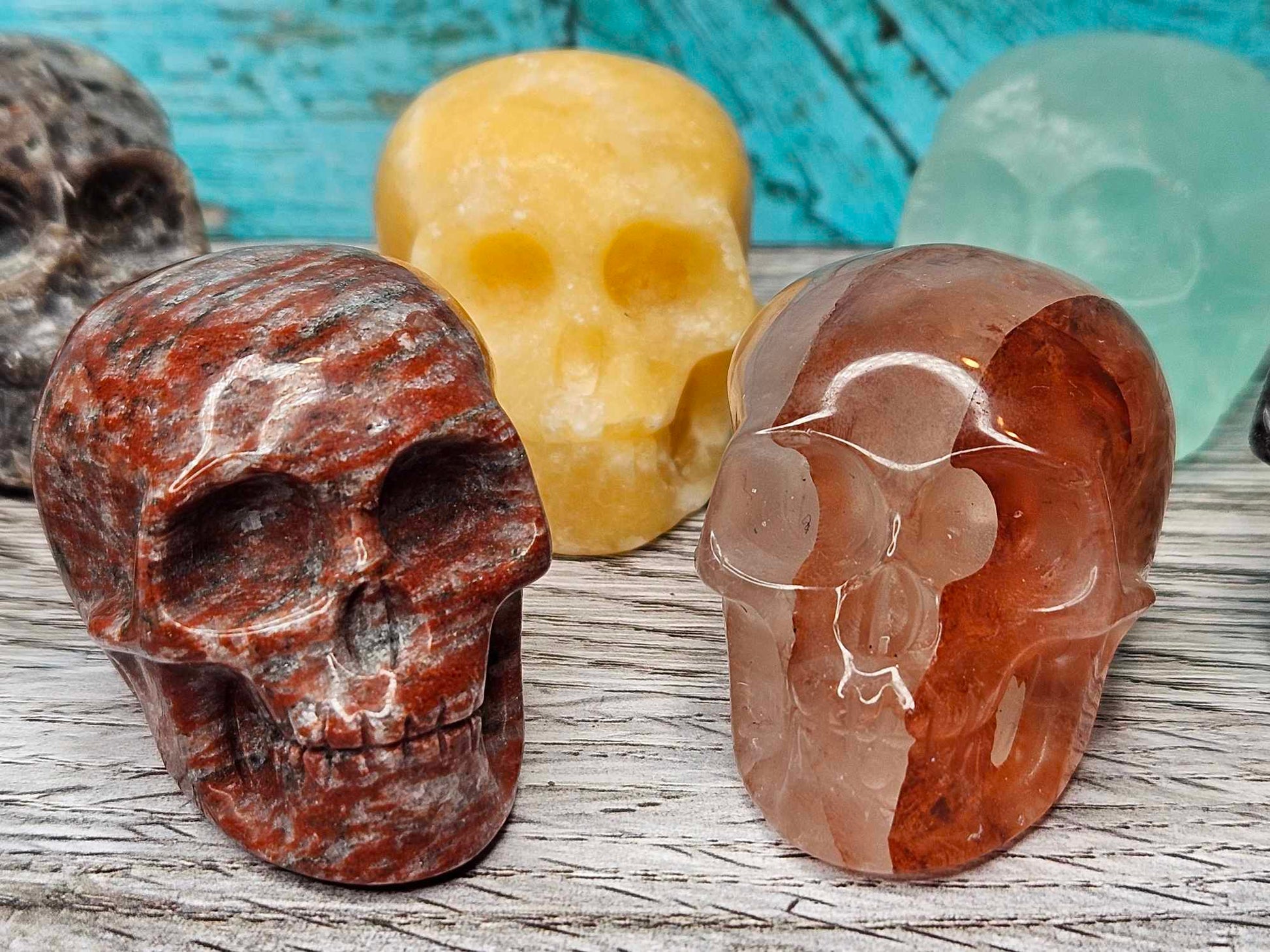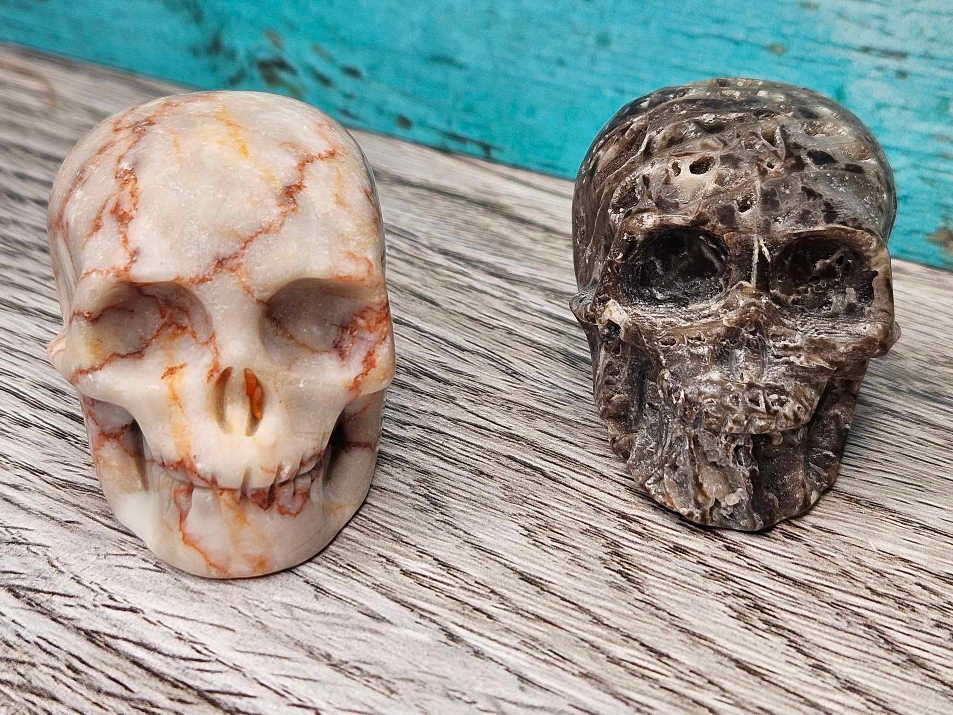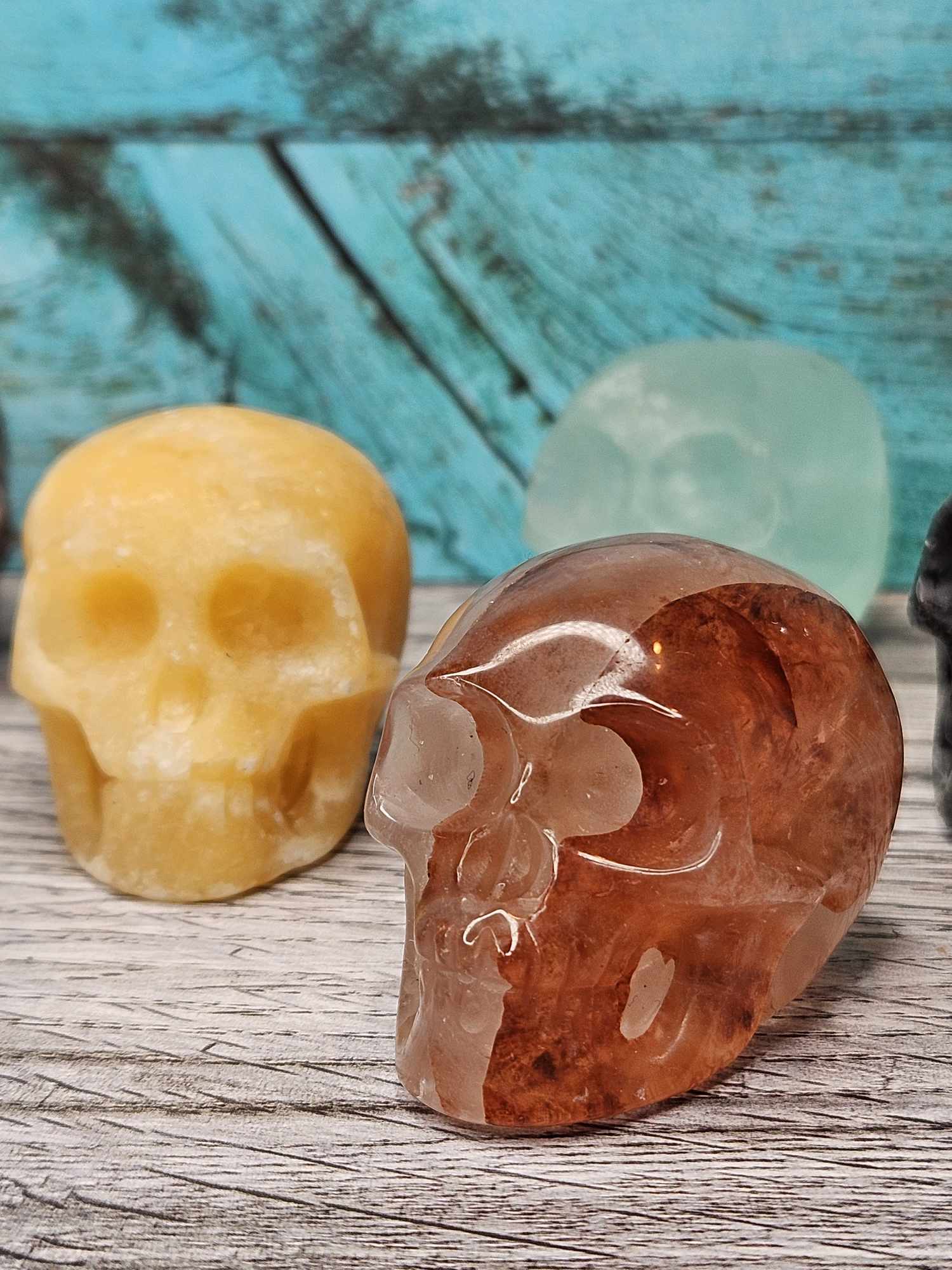 These skulls come in a variety of different crystals which will be intuitively channeled and chosen for you specifically. I will include a note on your packing slip as to which crystal skull you’ve received so you can see how that healing magic gets absorbed by your sweet skull baby. Skulls are positive symbols of protection and the human experience. A skull in a healing spell provides healing to the mind, the body and the spirit because the skull represents all three. These skulls will bring big magic to the spell table by directing the spell to integrate through your spirit and into your physical form. They will then carry that energy and all those good juicy healing vibes right to you and your world. Helpful for mental health, physical body and emotional healing; one of these intuitively chosen assorted skulls will find its way right to your world to channel that energy into your life. Assorted. Intuitively chosen.