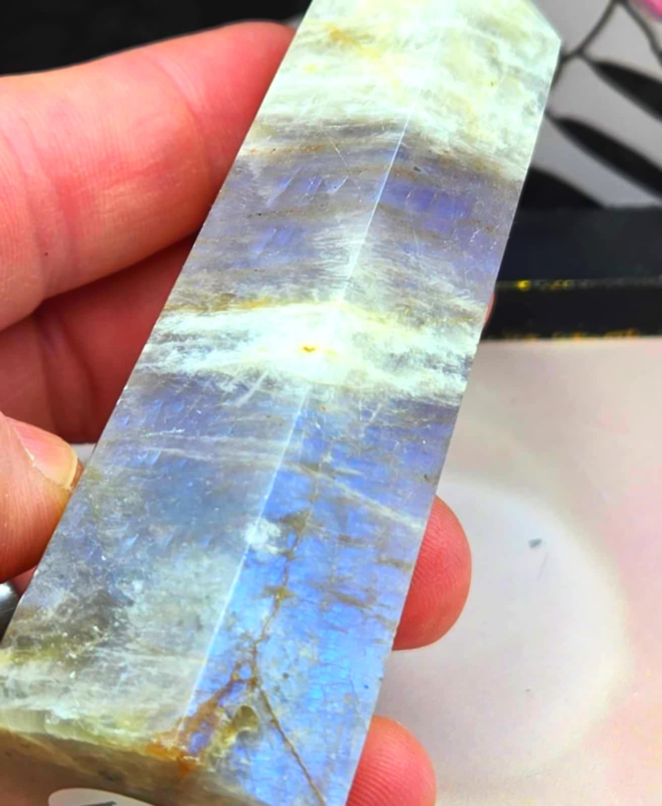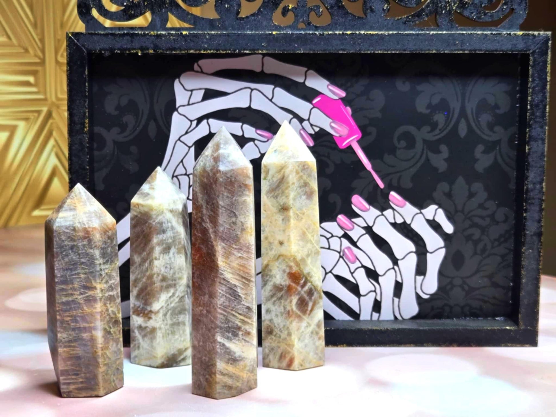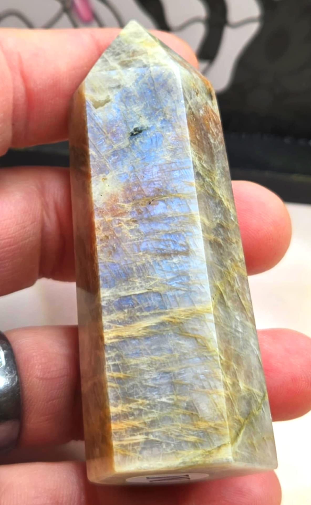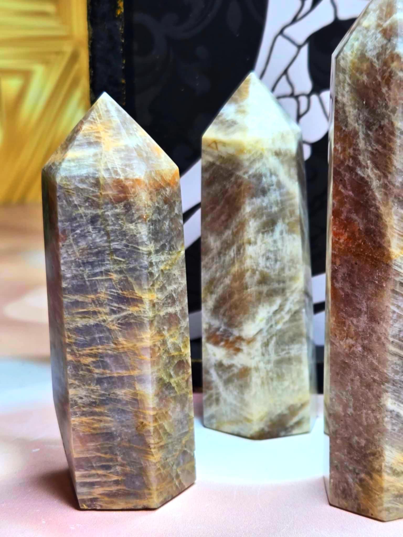 Yooo. Lemme tell you about Belomorite. Belomorite is a blend of Sunstone AND Moonstone, friends. How beautiful is that? Sunstone brings the energy of joy, positivity, happiness, motivation and success. Moonstone connects us to our intuition, our magic, our spirit, to hope, to seeing with new eyes. This stone is just everything. And these towers are beautiful with just the right amount of iridescence and flash.