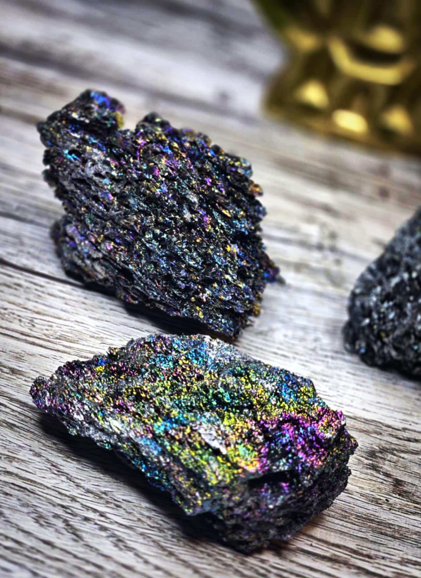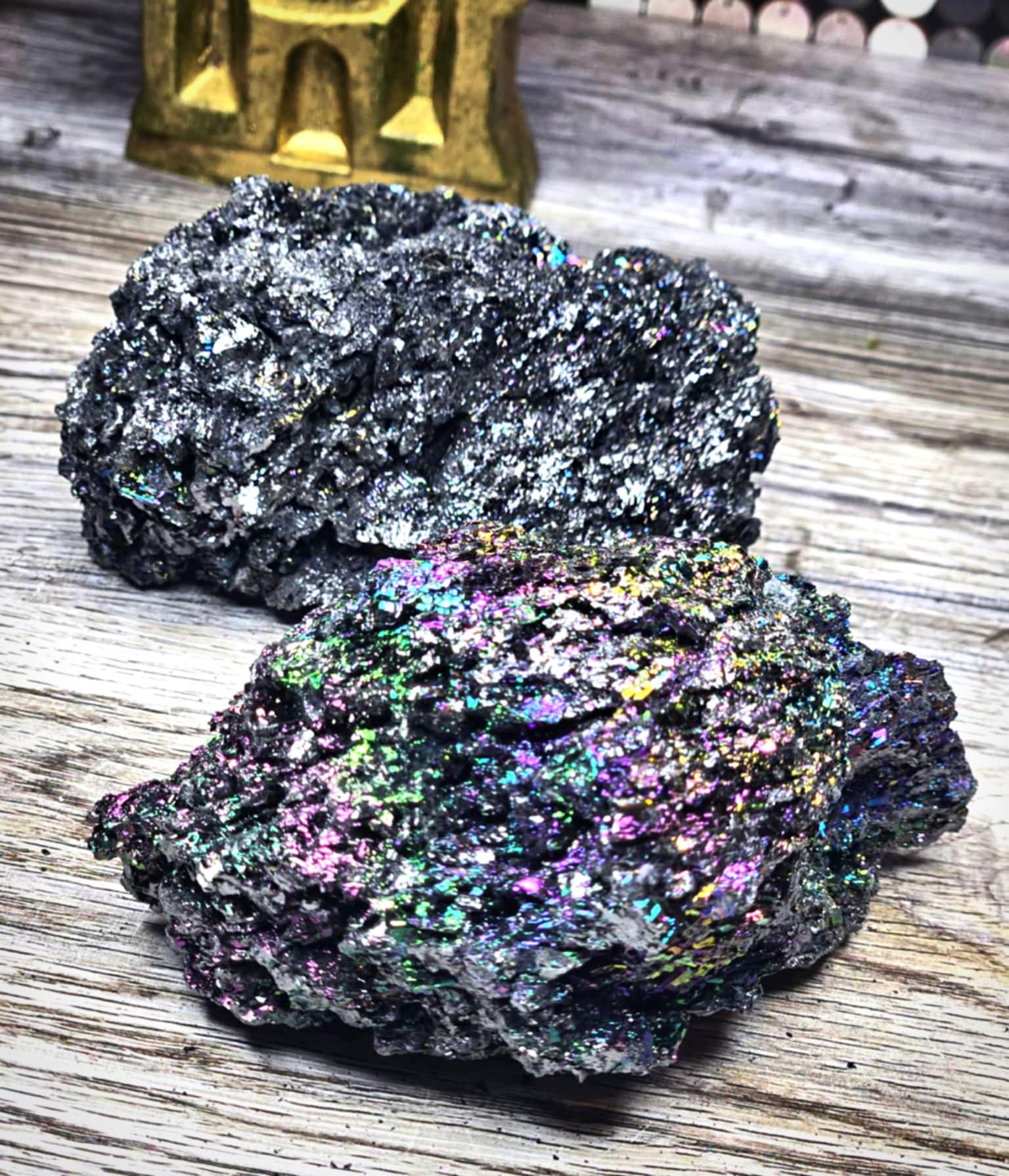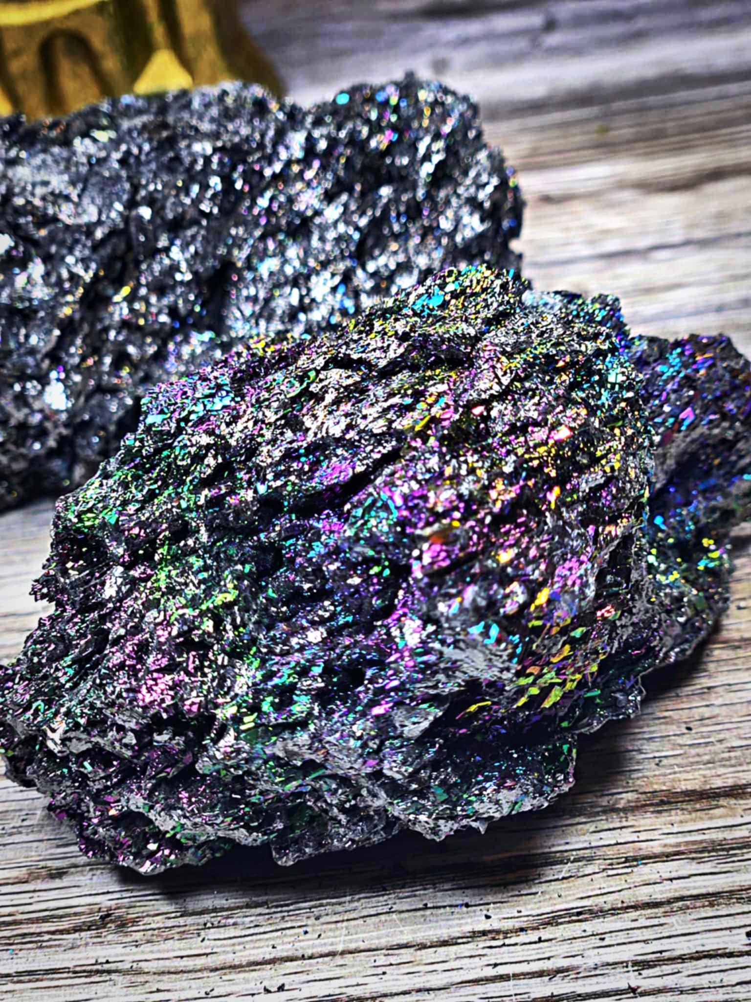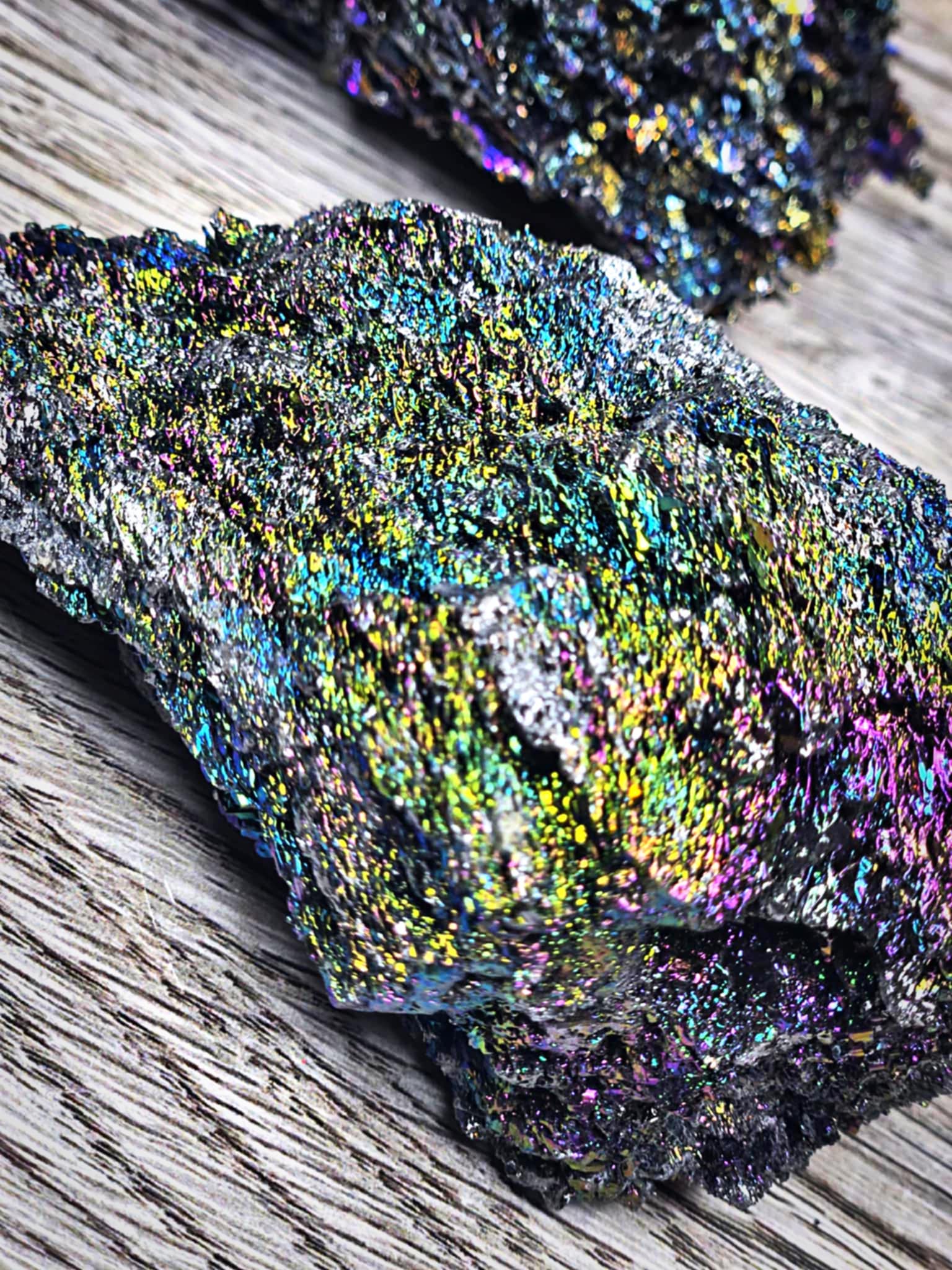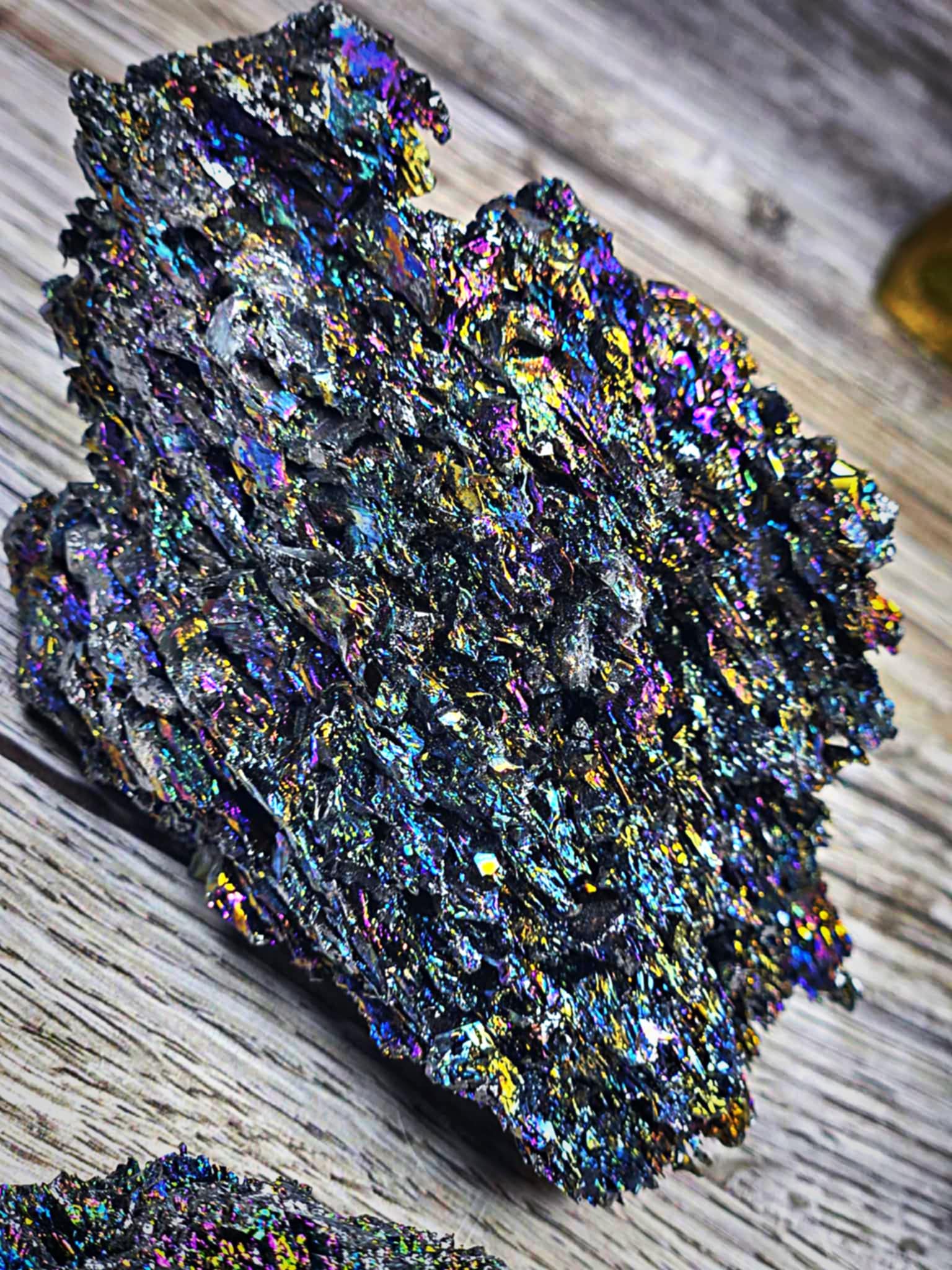 This is Rainbow Deliciousness. Have you ever seen Carborundum? All I can say is Wow. It is so pretty and so unique, I promise you dont have anything like this. Also, these pieces are big! And Special! And Powerful! Carborundum is known to be a Master Healer, it enhances telepathic communication, connection to spirit and ones channel and it elevates the energy around it. This is a piece that invites in magic and enhances the energy around it. Plus, its so unique and so pretty. Get you this one, you won’t be disappointed.