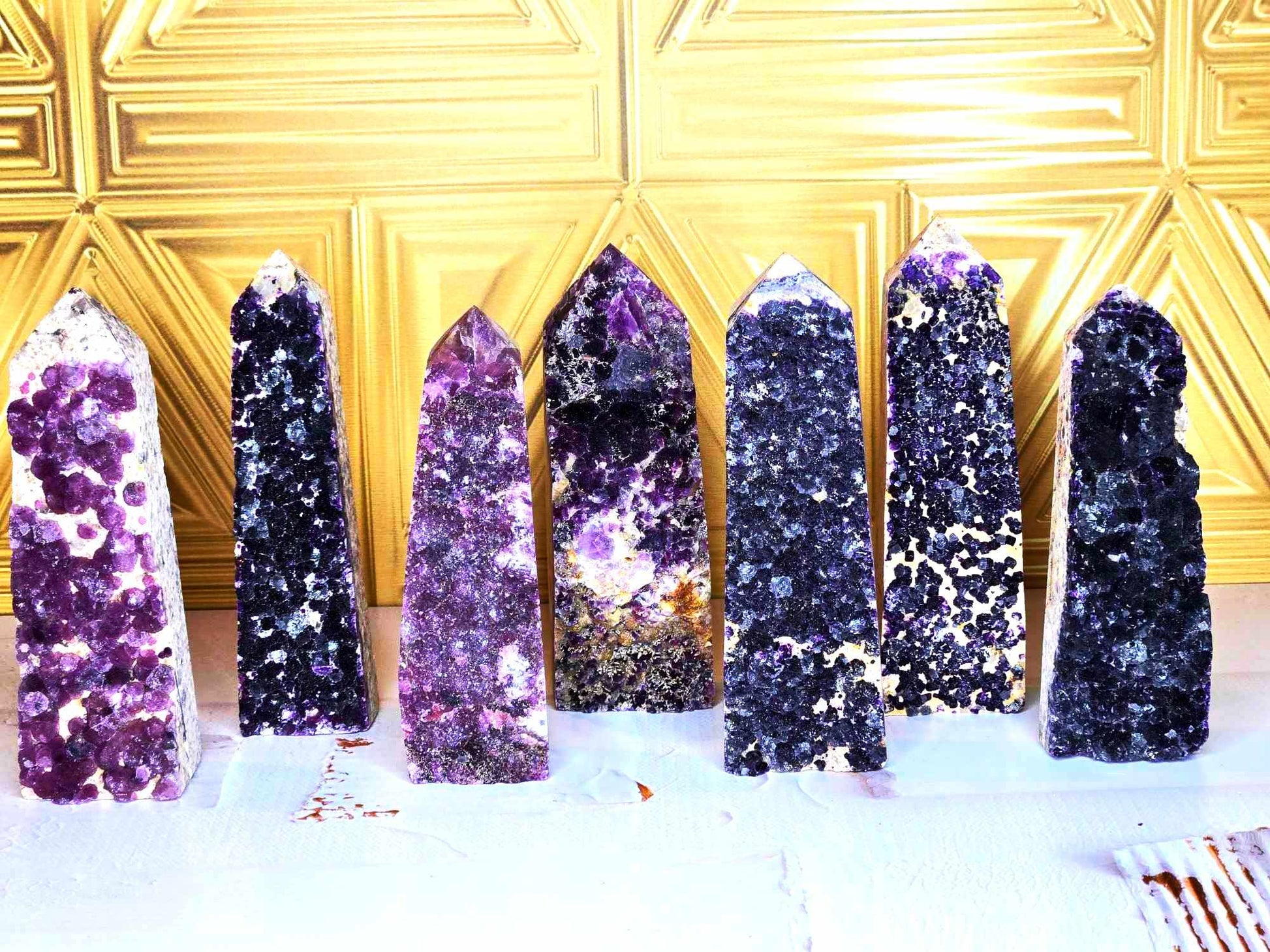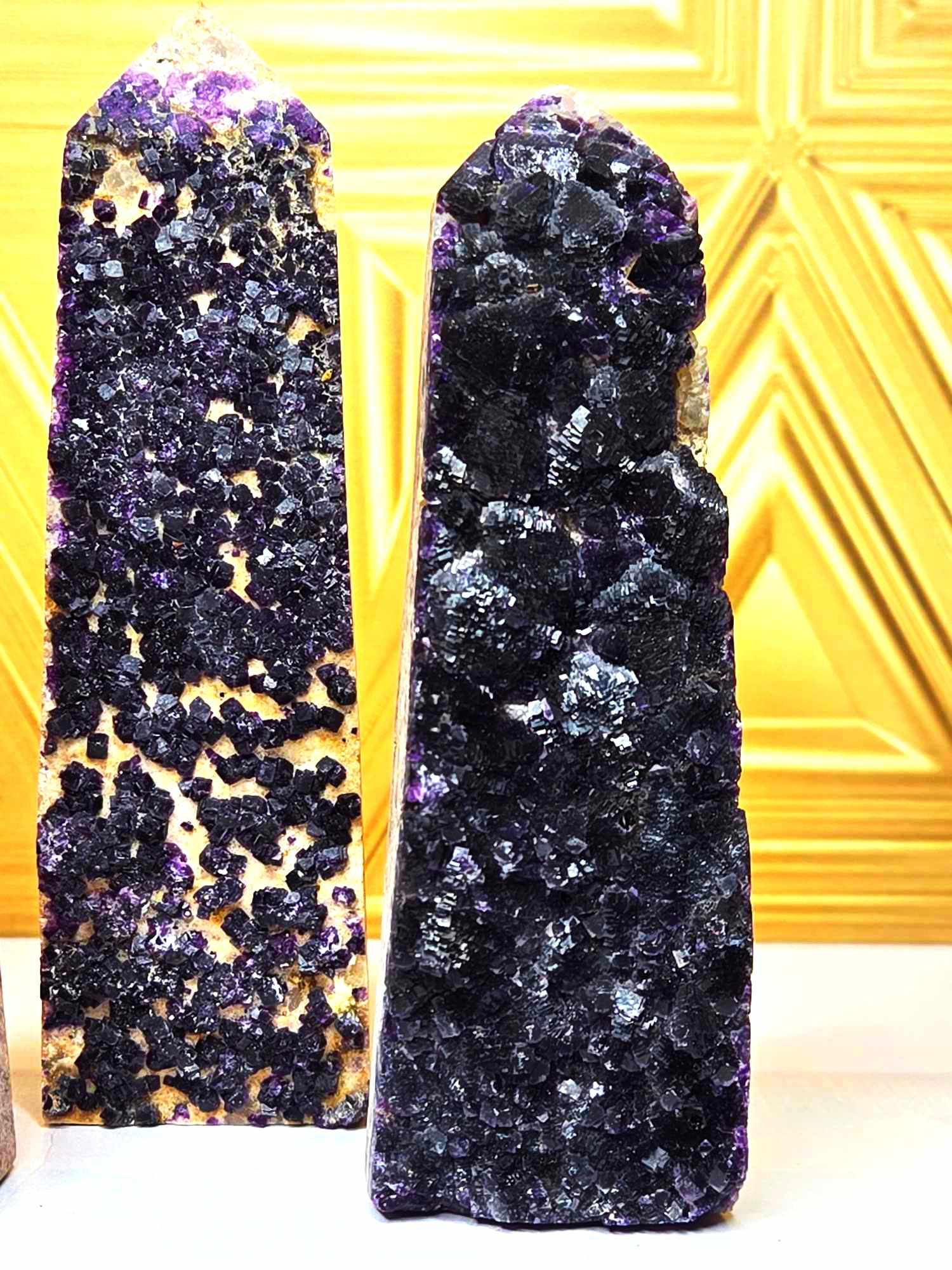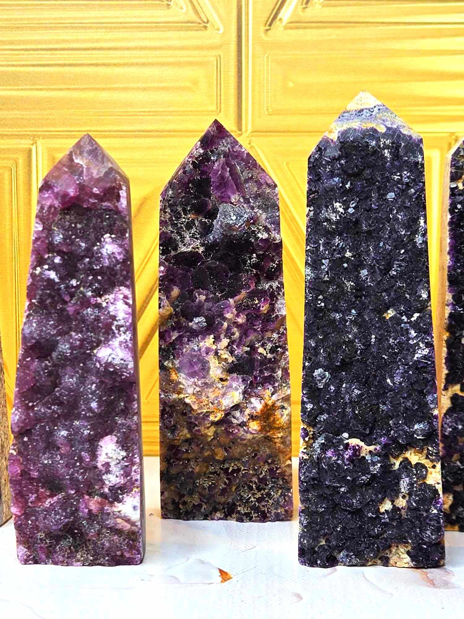 These completely unique fluorite towers look different than all other Fluorite you've seen. These have "deep within the earth" vibes and the way the fluorite crystals dance around the towers is so unique and gorgeous. They're big, bold and friendly AF. Fluorite helps us call forth spiritual energy and to go with the flow. Since your mind, body, emotions and spirit seek out balance, this will help while also being grounding (aka healing). Intuitively Chosen.