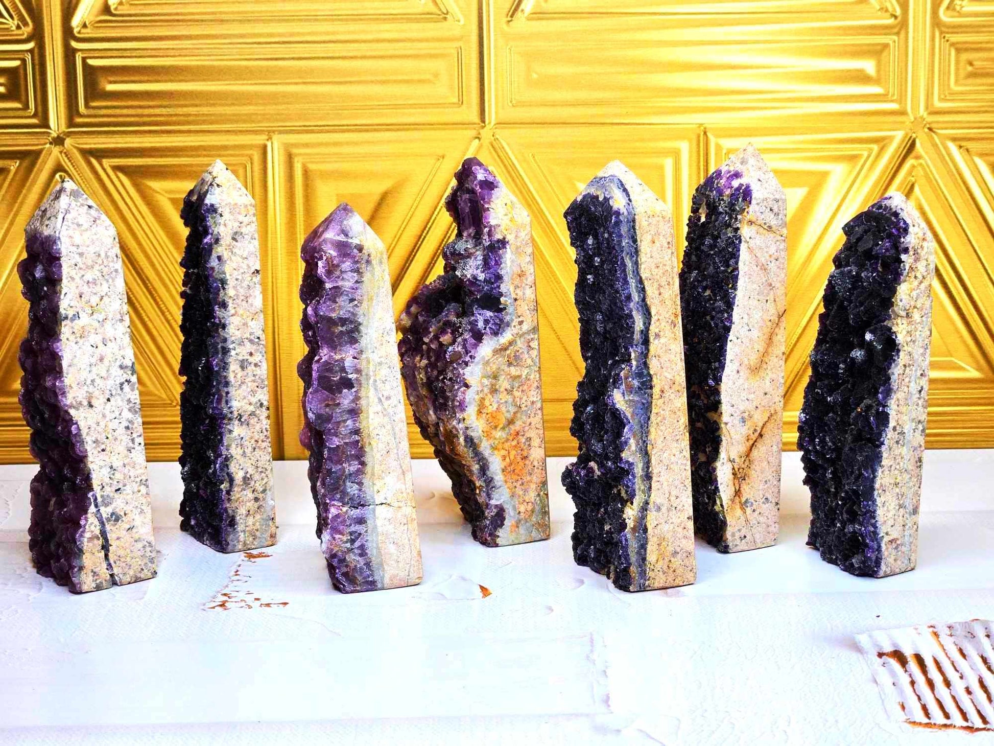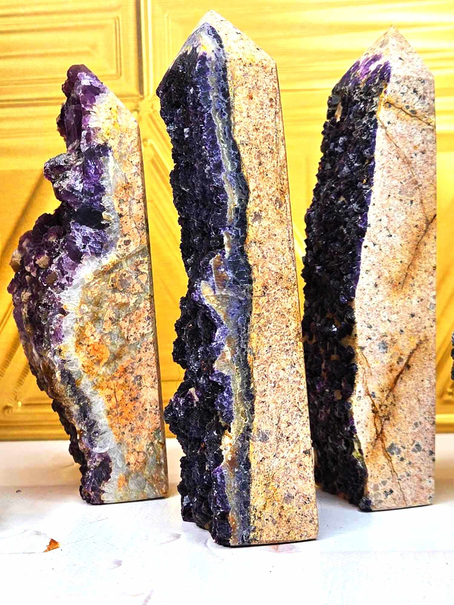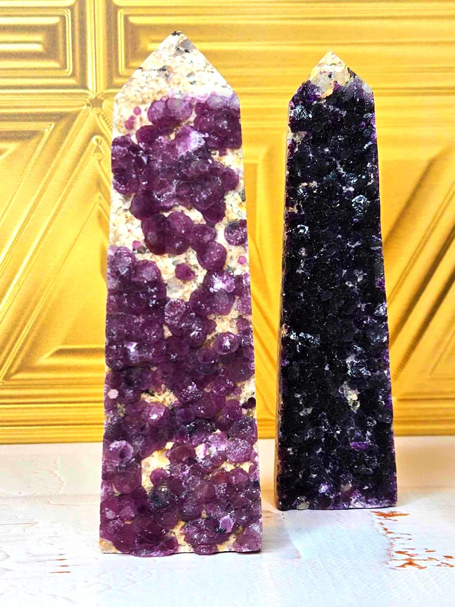 These completely unique fluorite towers look different than all other Fluorite you've seen. These have "deep within the earth" vibes and the way the fluorite crystals dance around the towers is so unique and gorgeous. They're big, bold and friendly AF. Fluorite helps us call forth spiritual energy and to go with the flow. Since your mind, body, emotions and spirit seek out balance, this will help while also being grounding (aka healing). Intuitively Chosen.