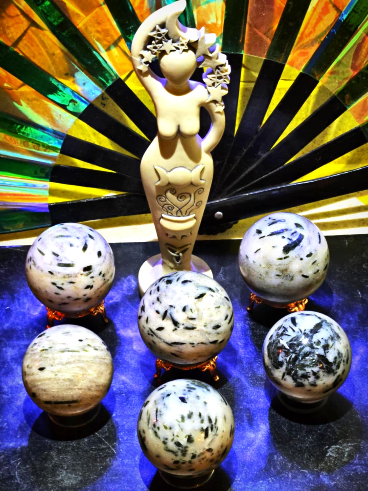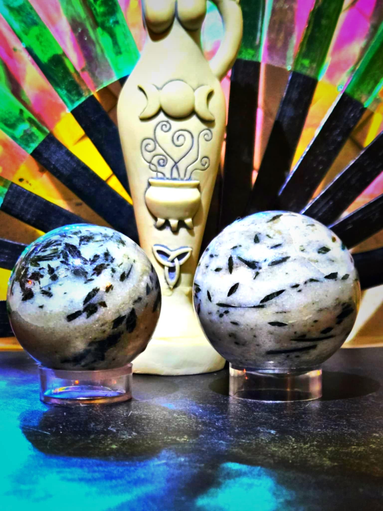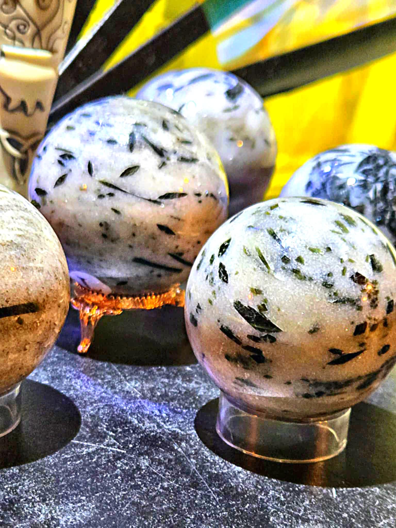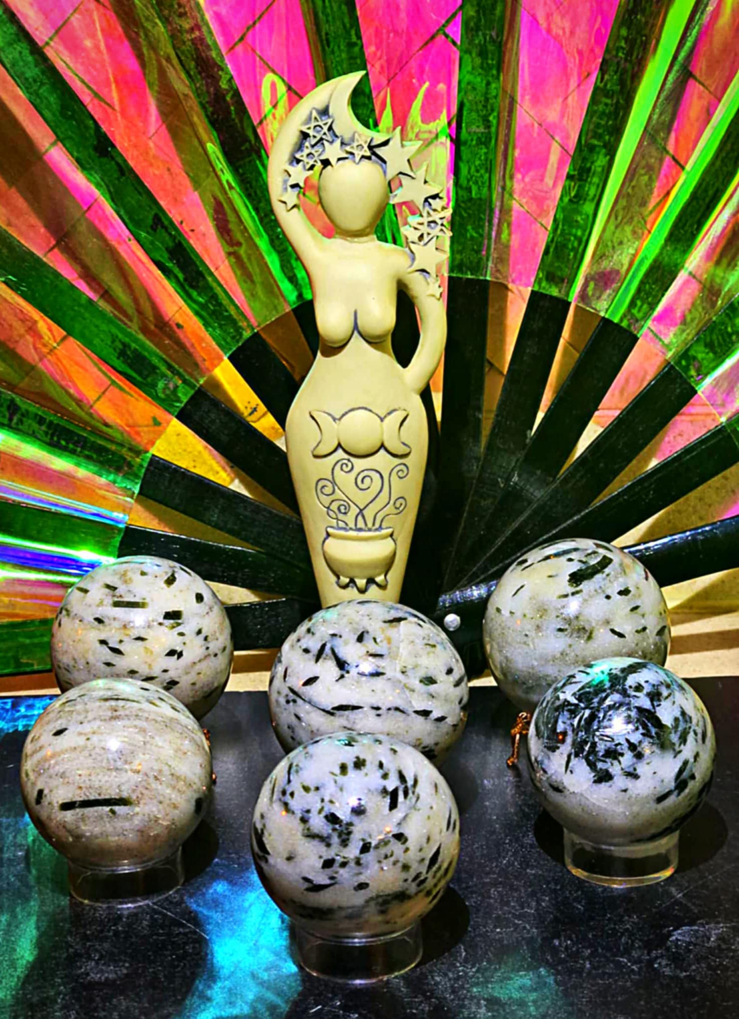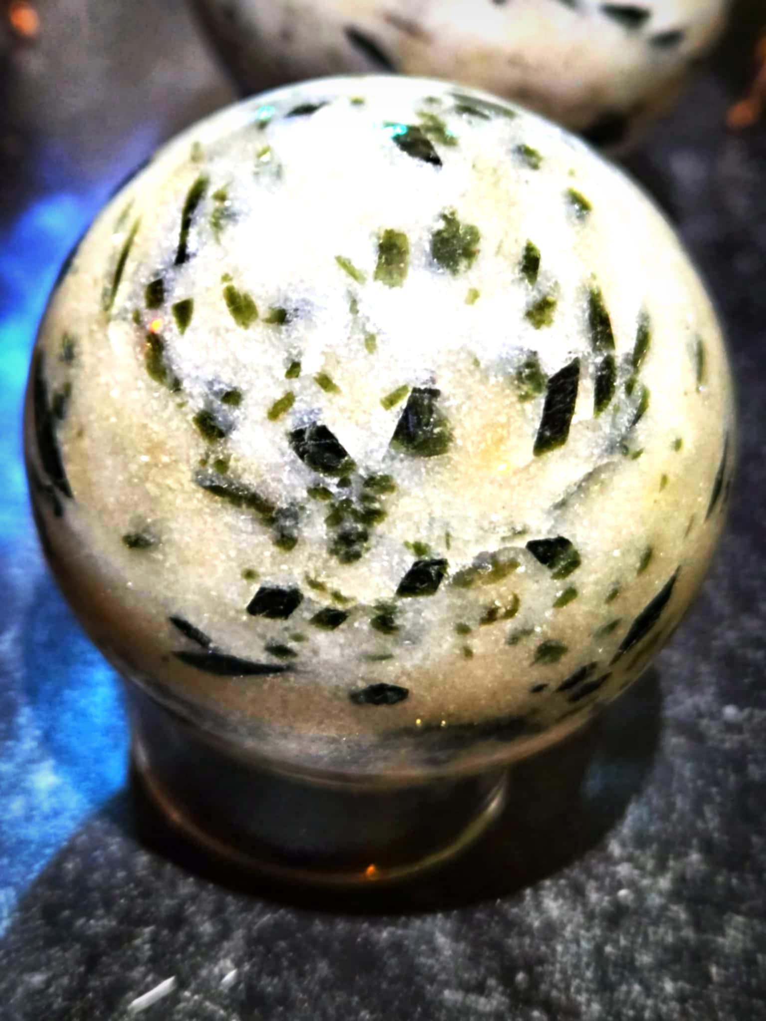 Green Tourmaline allows your heart chakra to speak loud and clear and to be made manifest. This sphere brings you a conduit between what your heart longs for and allows those things to be made manifest.