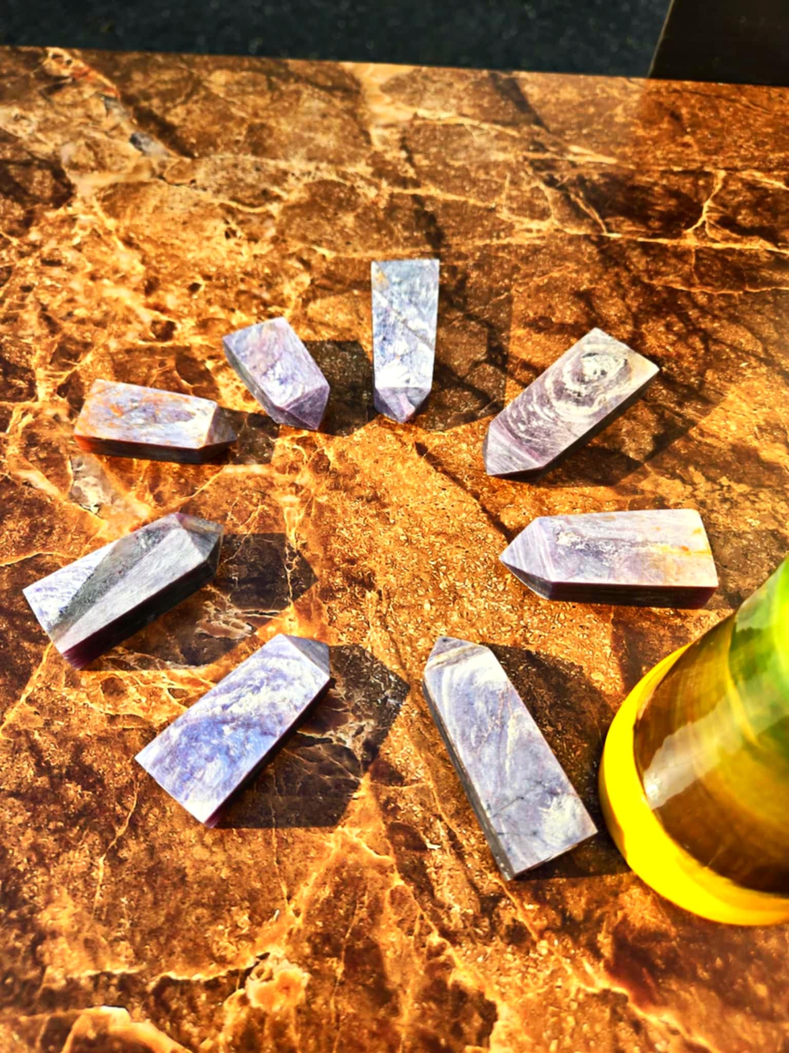 First of all, these are absolutely beautiful. Like notably so. These towers are unique for both their beauty and their shape. They're so stunning. They Shimmer, they glitter, they catch the eye in the most remarkable of ways. When you hold them, you feel a beautiful rush of energy through your body. Lepidolite is known to be a profoundly healing crystal. It is excellent for the autoimmune system. It helps support chronic conditions, chronic fatigue and depression. It soothes pockets of illness or places that are unwell in your body and it moves and clears those places. Sleeping with Lepidolite will help you to heal overnight and wake up feeling in a better place mentally and physically. Lepidolite also can support the removal of blockages, put balance back into your system both mentally and physically and allow you to relax and release.