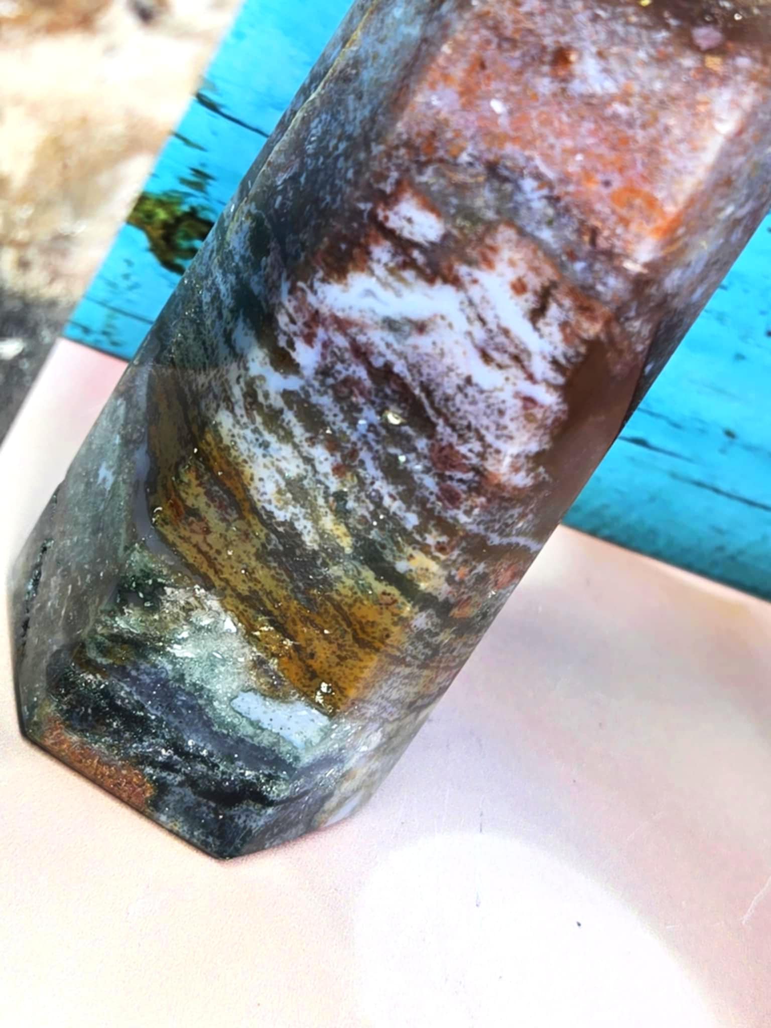 Ocean Jasper is such a great stone for positive energy and shifting yourself into a mindset of possibility and openness. Once you get in that space it draws more and more of that good energy to you. If you can trust it and take its lead you will find your auric field shifted to a safe and whole place of positivity in a short while. Spend time with your tower frequently and it will help re-program your default energy to that of expecting and receiving all the good outcomes you can imagine.