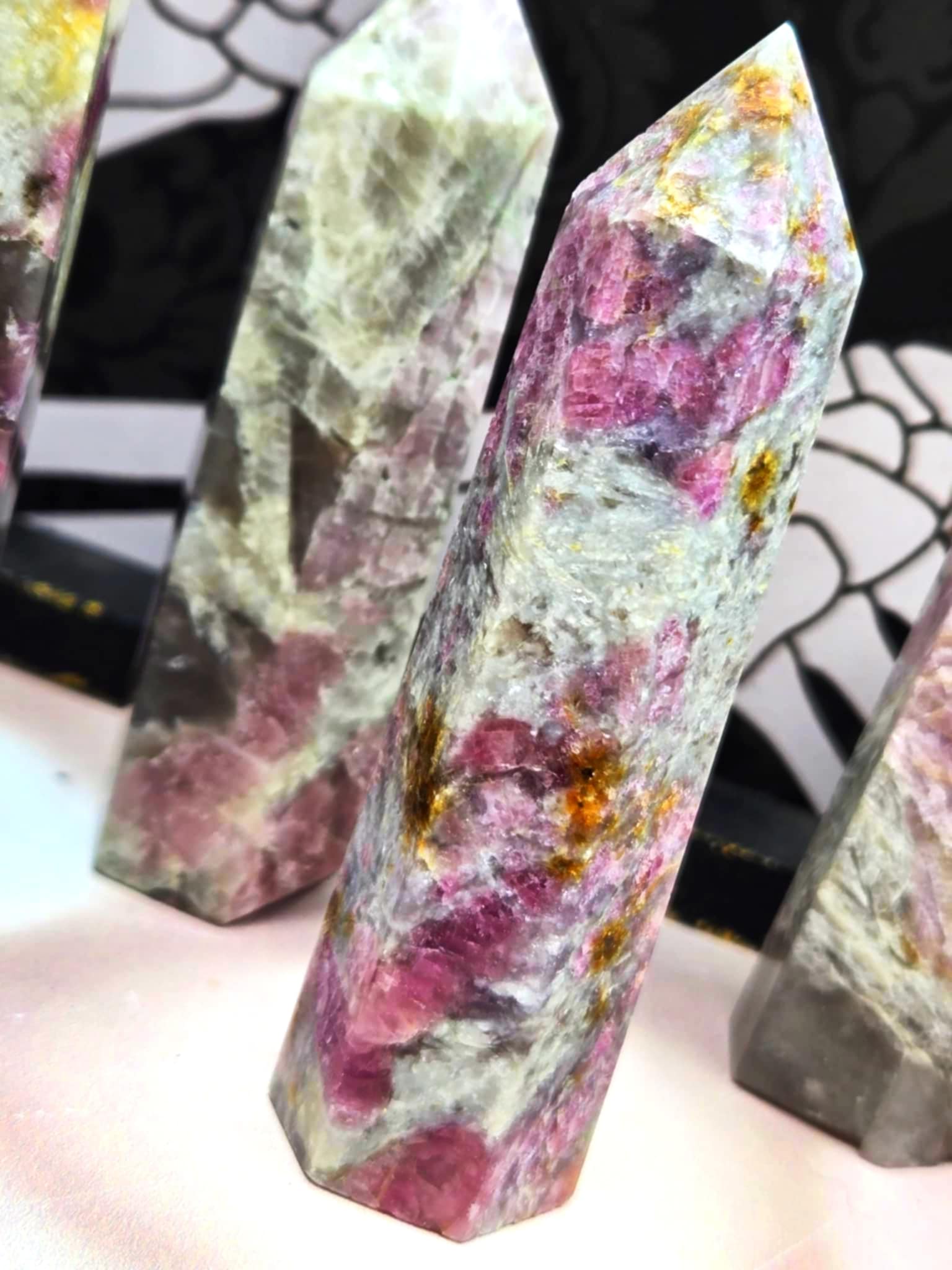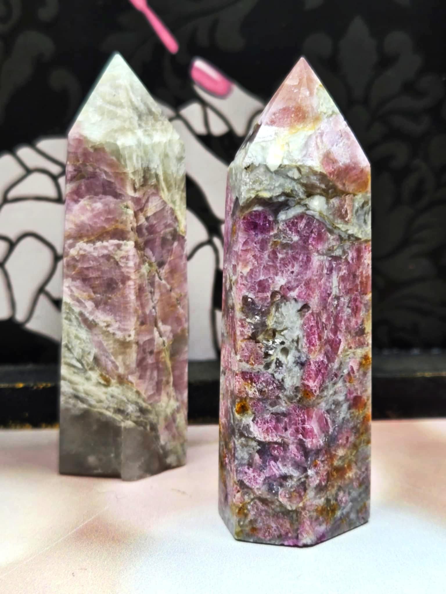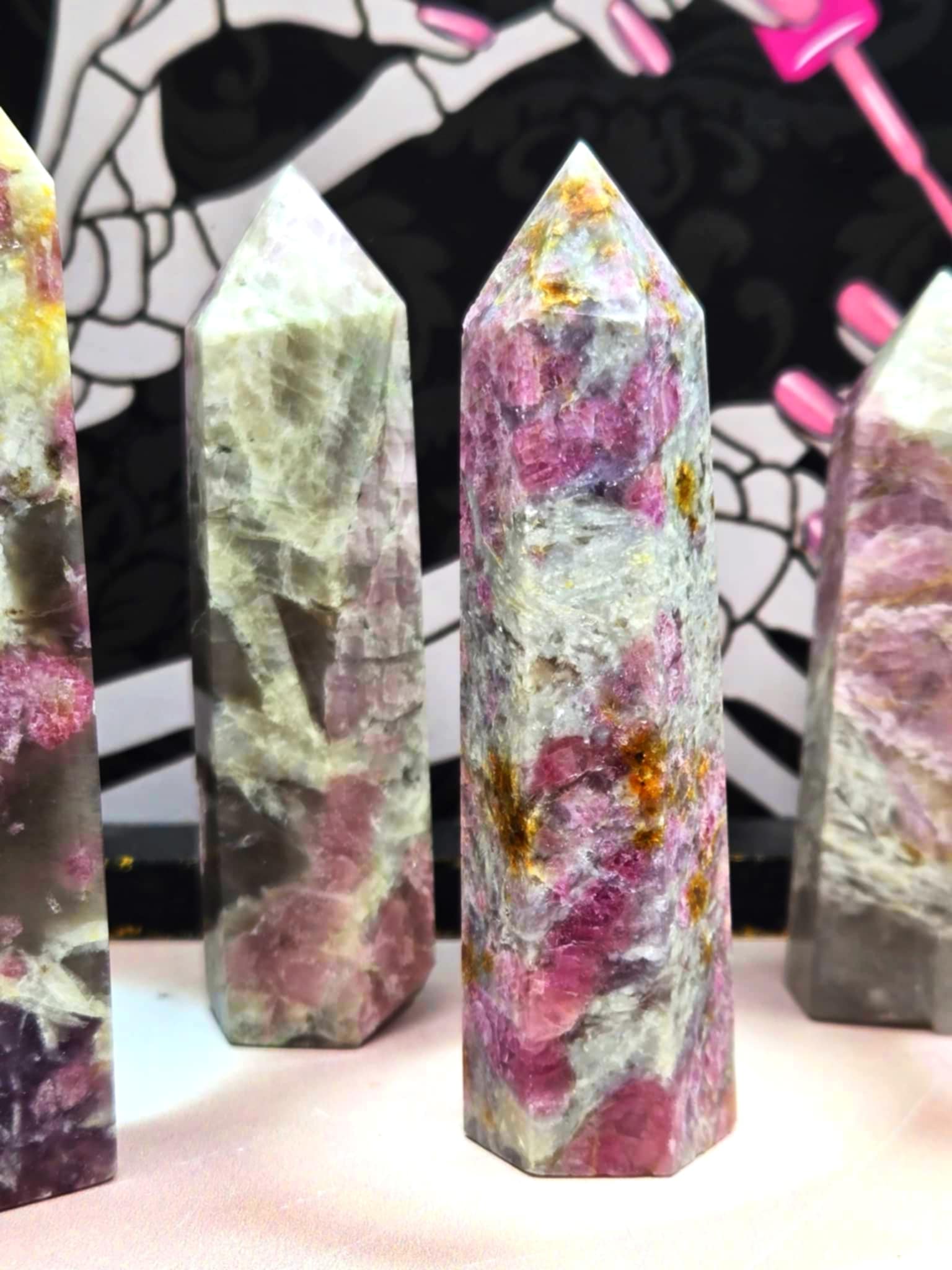 dreamy sigh. Pink Tourmaline is a beautiful example of gorgeous energy embodied in a gorgeous package. These towers are about to hit you with the energy of love (for the self, for others, for your whole life), compassion, joy, peace and emotional healing and stability. These towers bring you all that positive energy that pairs so wonderfully with the charm of the Glamour Spell. Draw those good vibes in and keep em with the help of these towers.