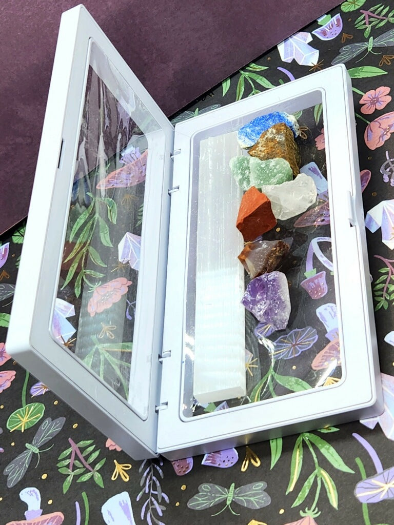 Okay okay okay. We gotta just calm down and breathe even though it’s impossible because this is the coolest offering EVAR. These Crystal Frames are EVERYTHING and I am obsessed. You can keep these rough chakra crystals in there or swap them out for literally whatever else you want to showcase in these dope AF floating crystal showcase frames. These are such a cool decor solution for crystal display. How often have you wanted to show off a smaller scale but STUNNINGLY BEAUTIFUL crystal baby? Thousands of times? Same, friend. Same. These dope AF frames allow us to do exactly that. And it is glorious magnificence. Just like you.