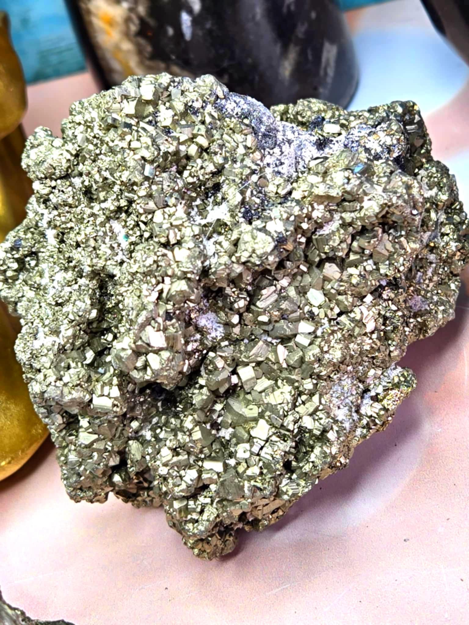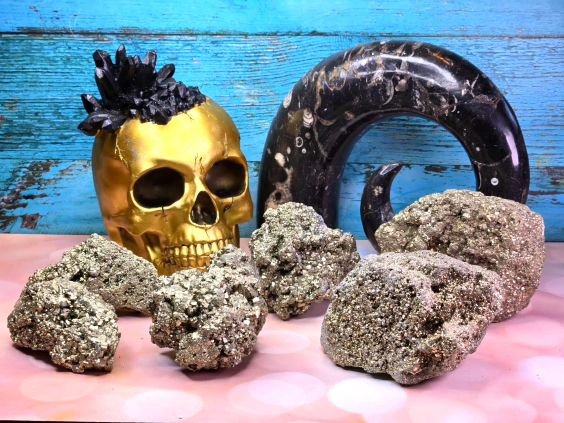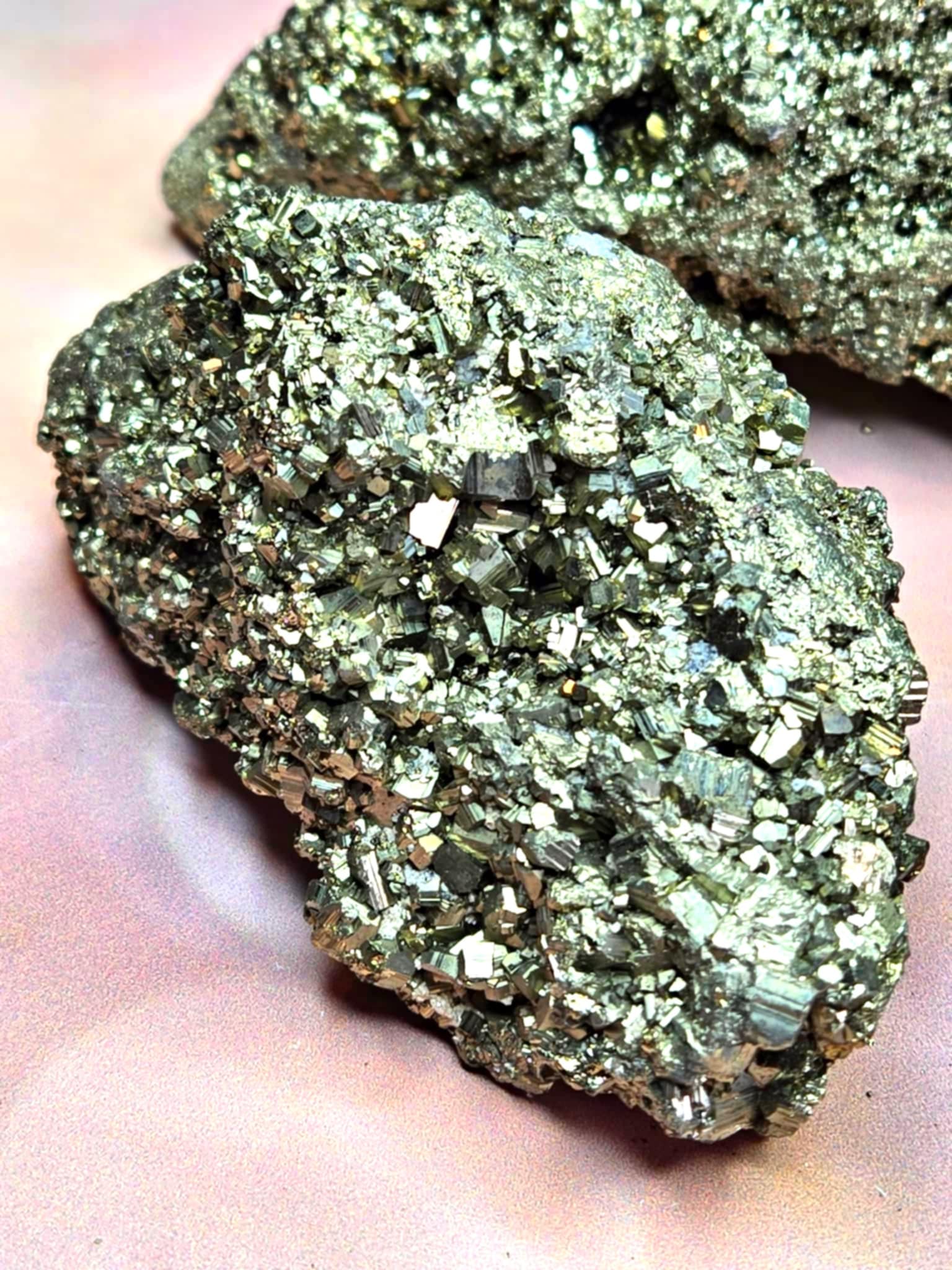 These Pyrite clusters are huge. For real. They're also crazy glittery and magical. Pyrite is such an excellent and multifaceted crystal. It draws in positive energy and good luck while also manifesting money, prosperity and abundance. But Pyrite is also crazy protective. Ores draw in negative and harmful energy and ground and dissipate them. These Pyrite clusters will bring you so much good energy: prosperity, luck, and powerful protection.