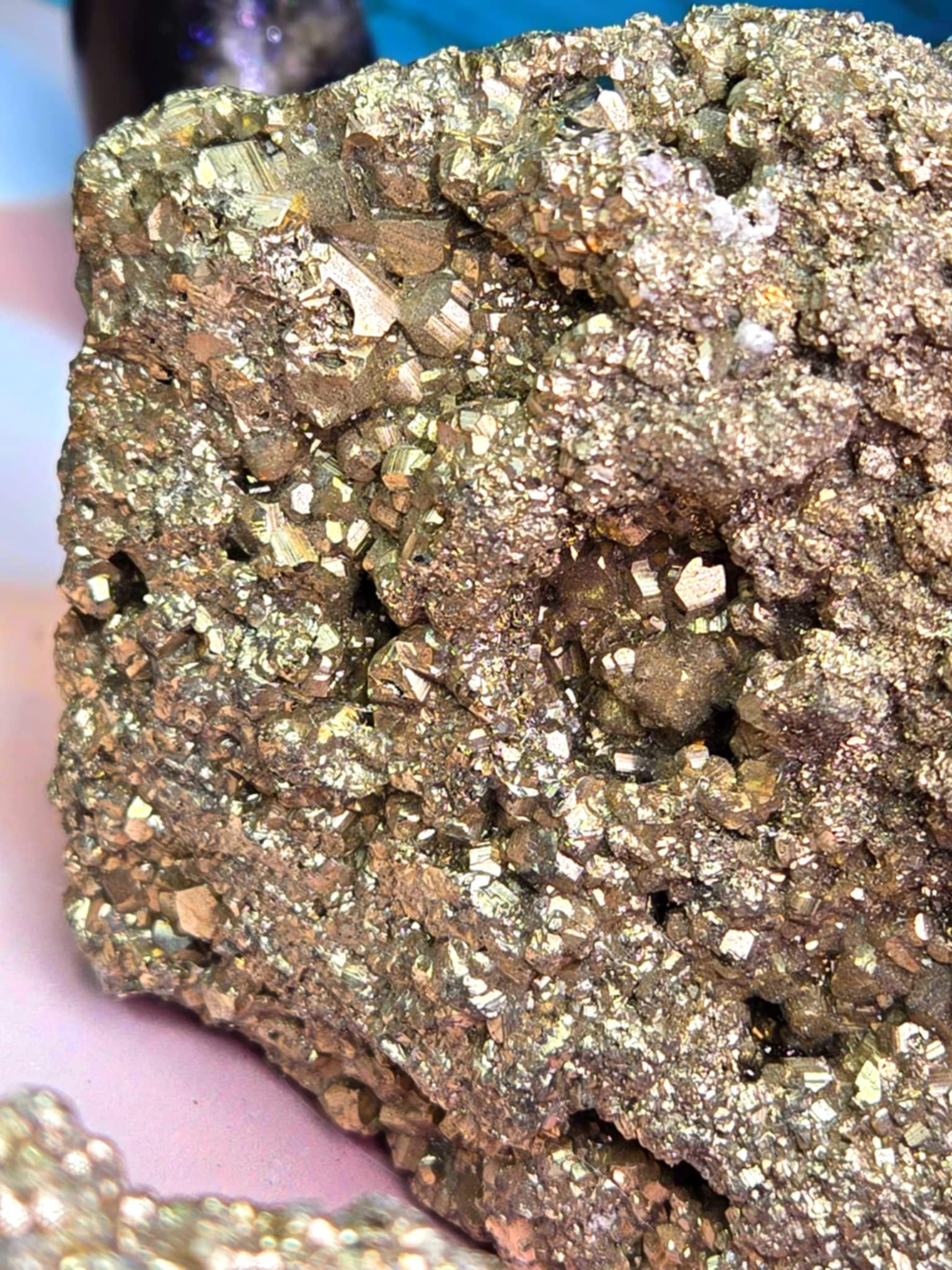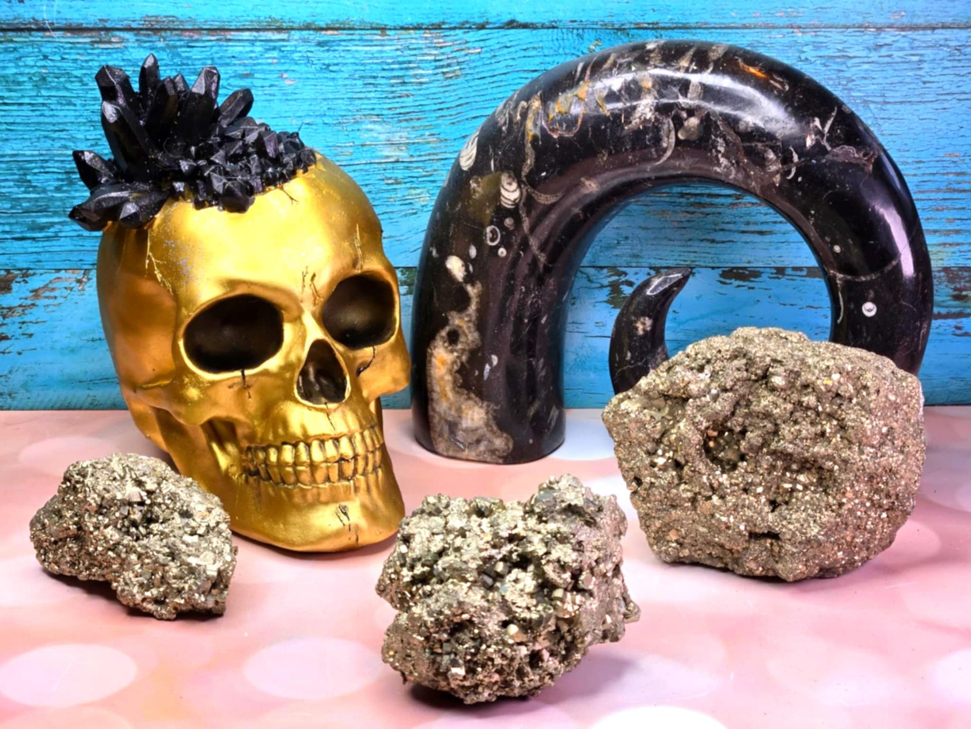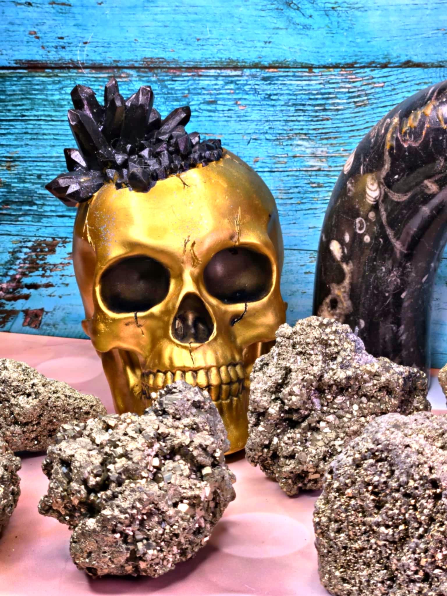 These Pyrite clusters are huge. For real. They're also crazy glittery and magical. Pyrite is such an excellent and multifaceted crystal. It draws in positive energy and good luck while also manifesting money, prosperity and abundance. But Pyrite is also crazy protective. Ores draw in negative and harmful energy and ground and dissipate them. These Pyrite clusters will bring you so much good energy: prosperity, luck, and powerful protection.