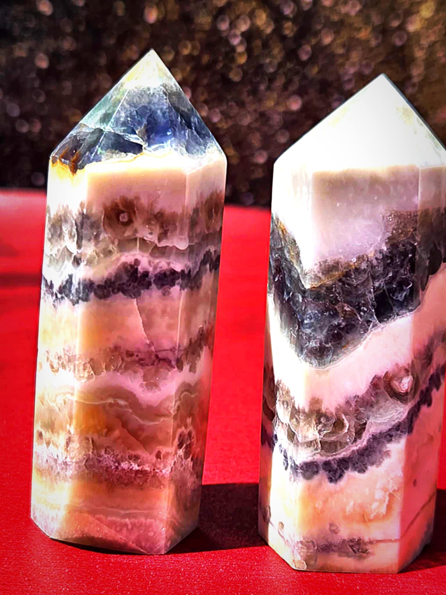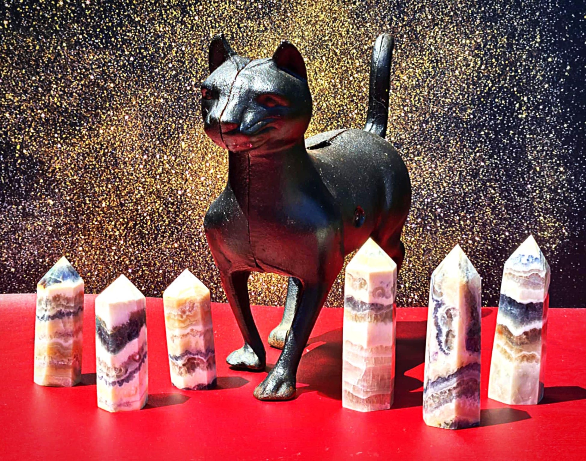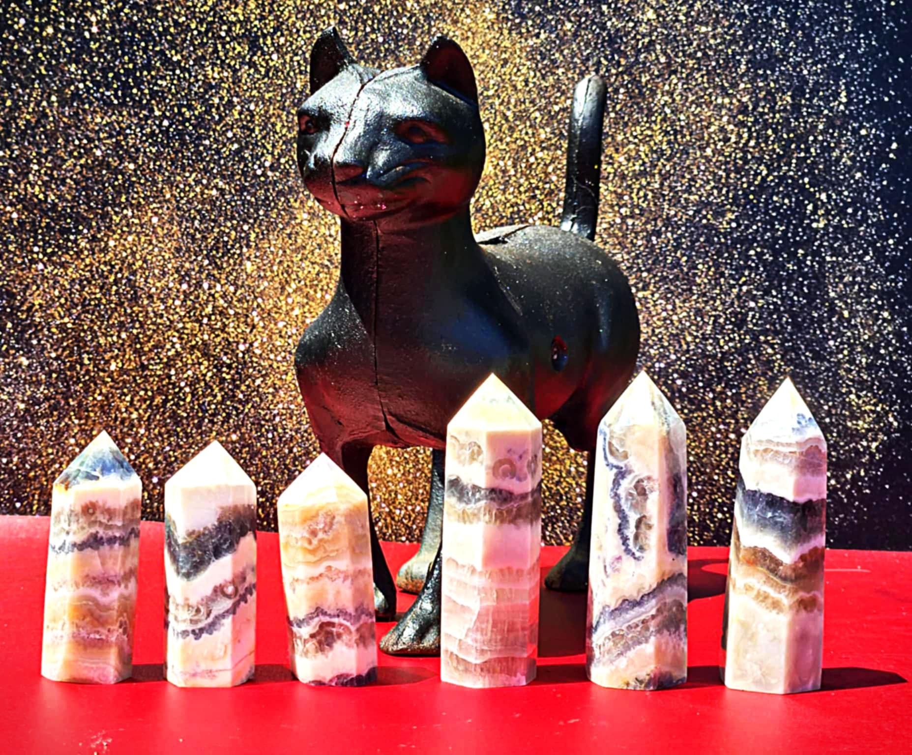 Banded Blue Fluorite is rare and mesmerizing. These towers are streaked with bands of positive spiritual energy. You know Fluorite is such a connection crystal. It brings that flow of Spirit to ya. But each color of Fluorite does different things. Blue is a color of Spiritual Connection and the energy of allowing. It is healing, it is full of divine communication and it is powerful AF. Blue Fluorite also brings a sense of peace, calm and a reduction in your anxiety. The reason for this is that if we are calm and held down, we can expand and open up. Banded Blue Fluorite adds layers upon layers of clearing, grounding, and connecting. The Protection spell will bring out best of what this spiritual connection can offer you. With the spellwork affixed to these towers, you are able to expand your spiritual connection - enhance your psychic gifts and channel and to do so from a place of being deeply grounded, deeply protected. Keep these with your divination tools and on your altars. Use them in your witchwork. Sleep with them under your pillow. You will be so glad you did.