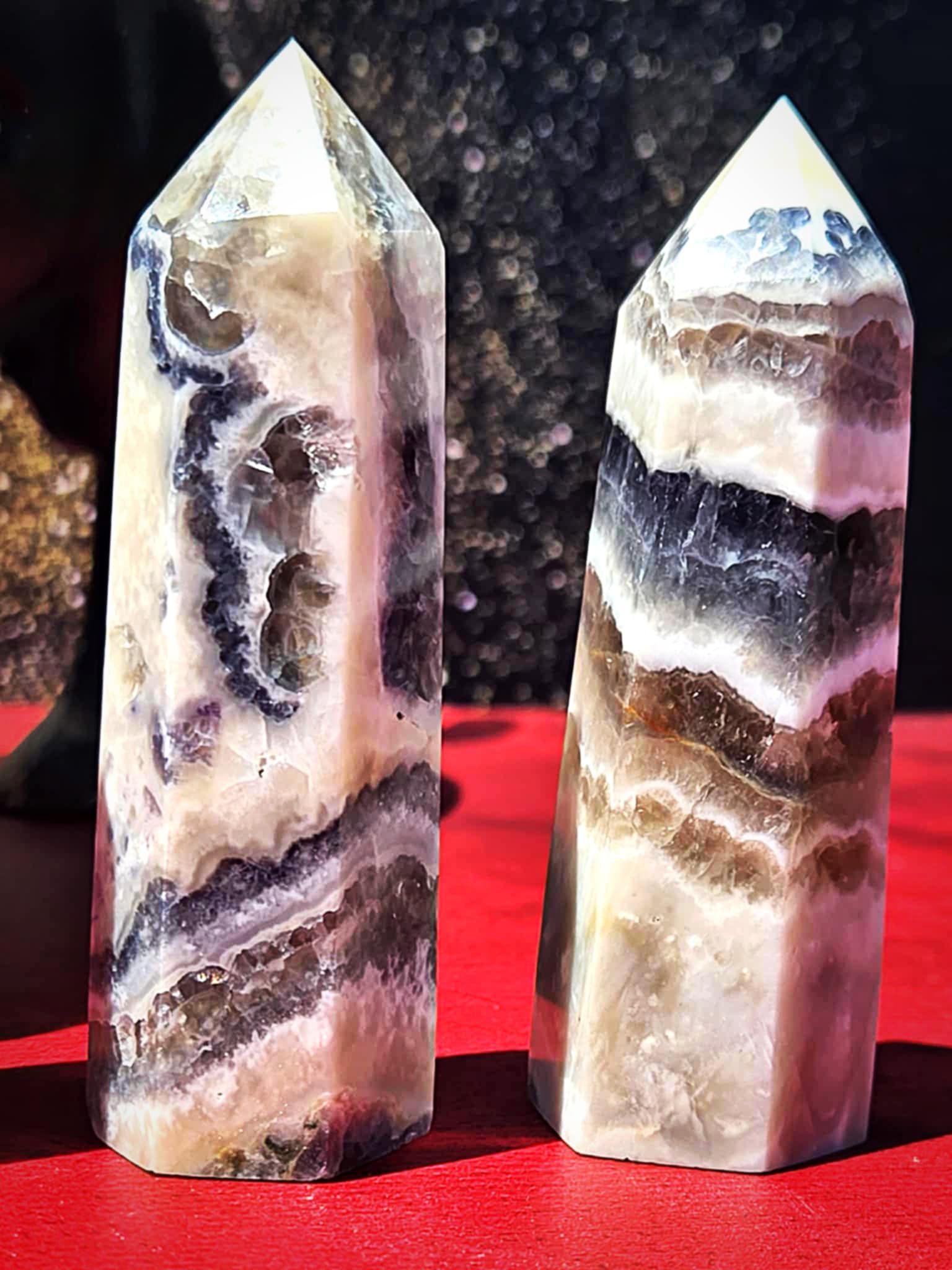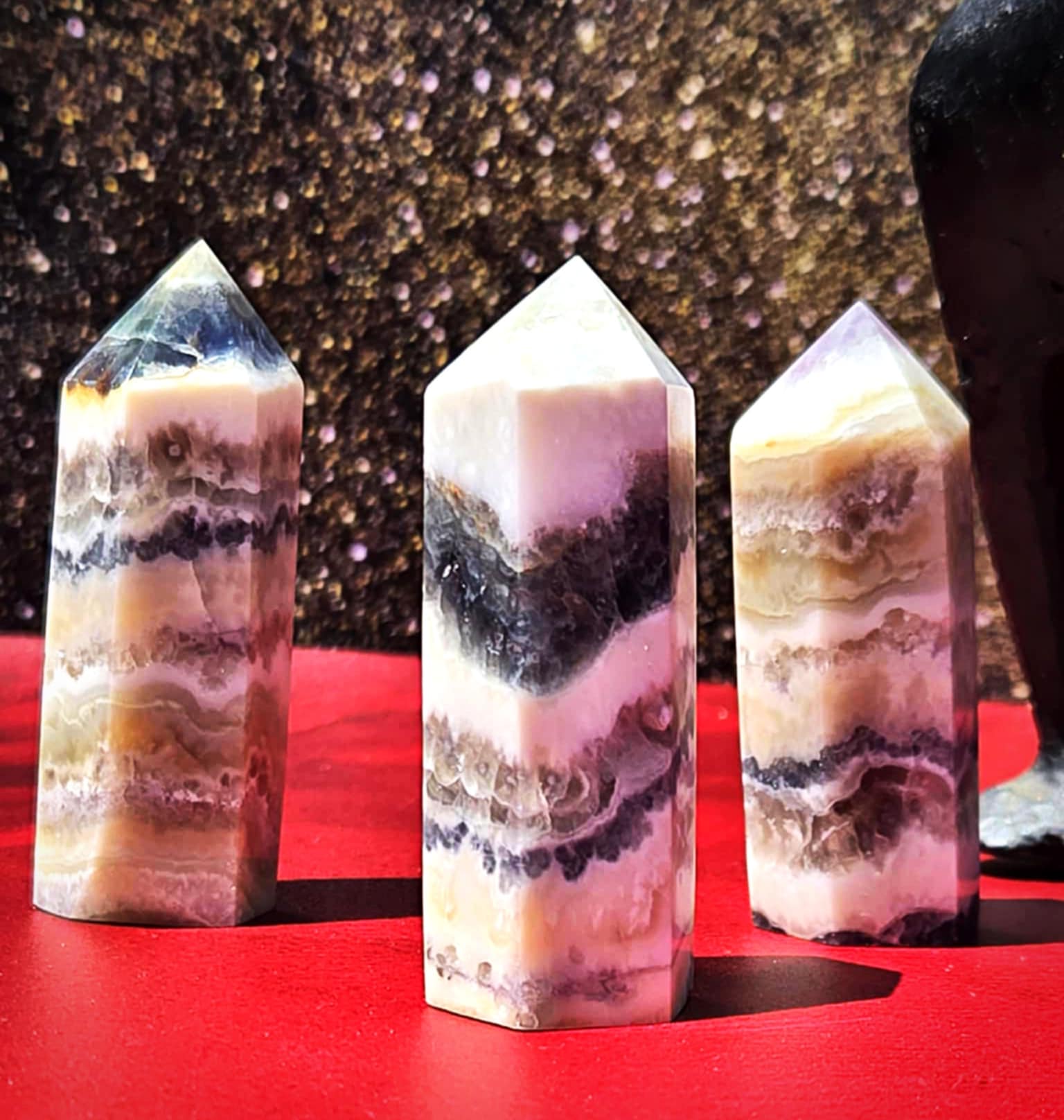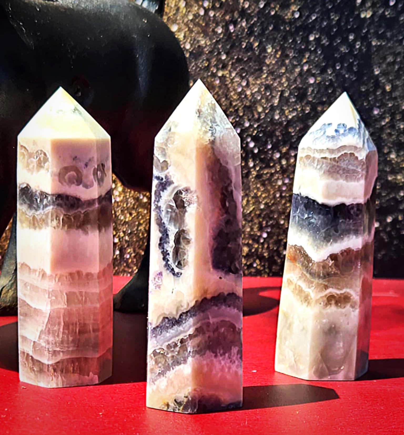 Banded Blue Fluorite is rare and mesmerizing. These towers are streaked with bands of positive spiritual energy. You know Fluorite is such a connection crystal. It brings that flow of Spirit to ya. But each color of Fluorite does different things. Blue is a color of Spiritual Connection and the energy of allowing. It is healing, it is full of divine communication and it is powerful AF. Blue Fluorite also brings a sense of peace, calm and a reduction in your anxiety. The reason for this is that if we are calm and held down, we can expand and open up. Banded Blue Fluorite adds layers upon layers of clearing, grounding, and connecting. The Protection spell will bring out best of what this spiritual connection can offer you. With the spellwork affixed to these towers, you are able to expand your spiritual connection - enhance your psychic gifts and channel and to do so from a place of being deeply grounded, deeply protected. Keep these with your divination tools and on your altars. Use them in your witchwork. Sleep with them under your pillow. You will be so glad you did.