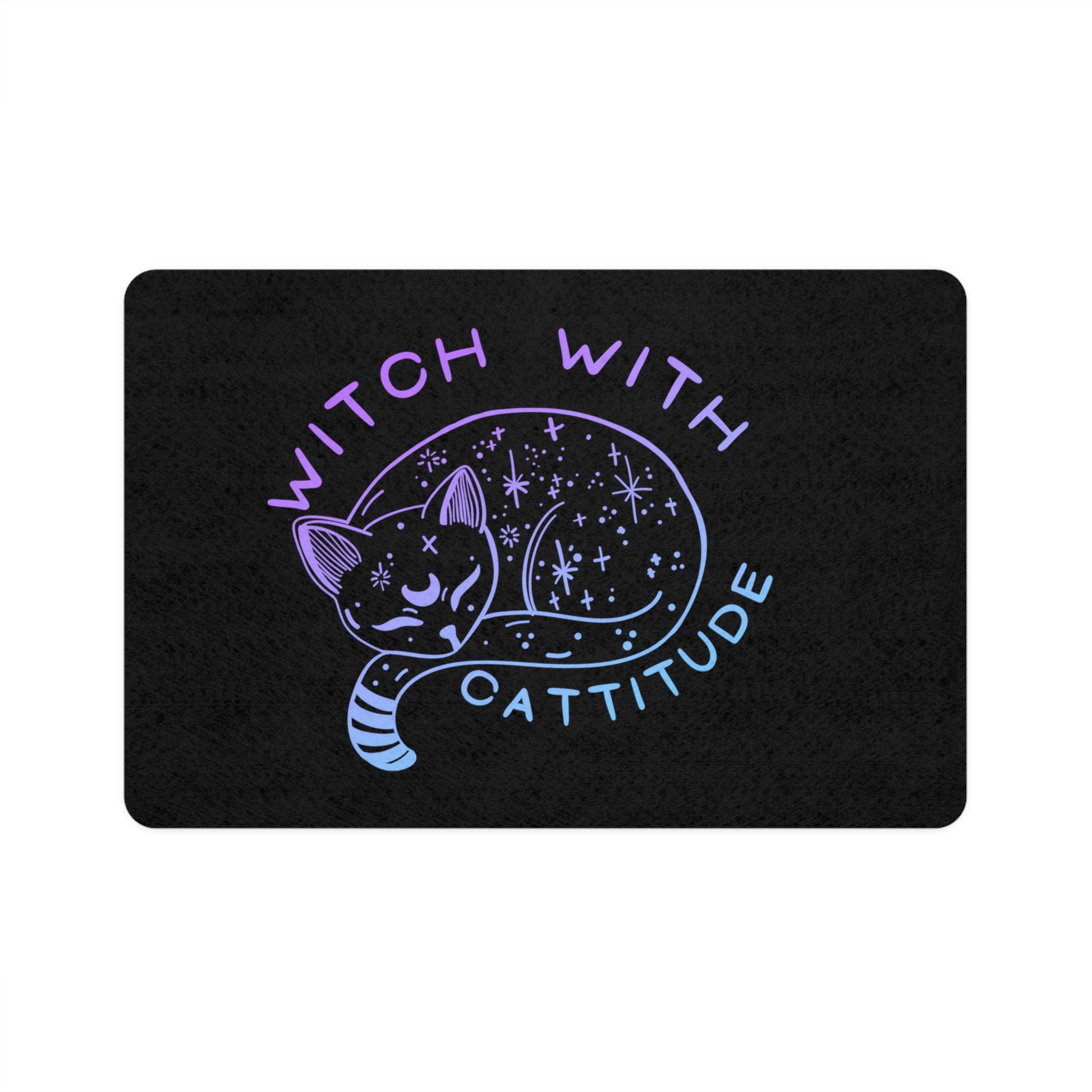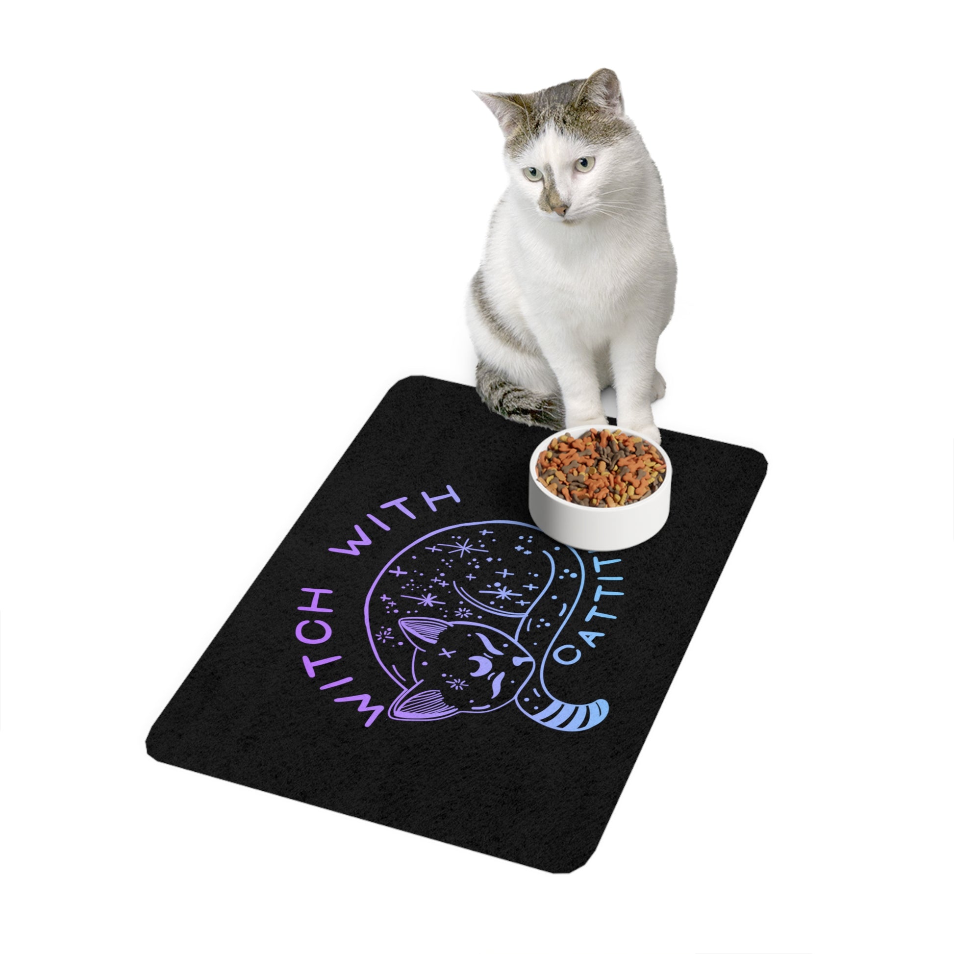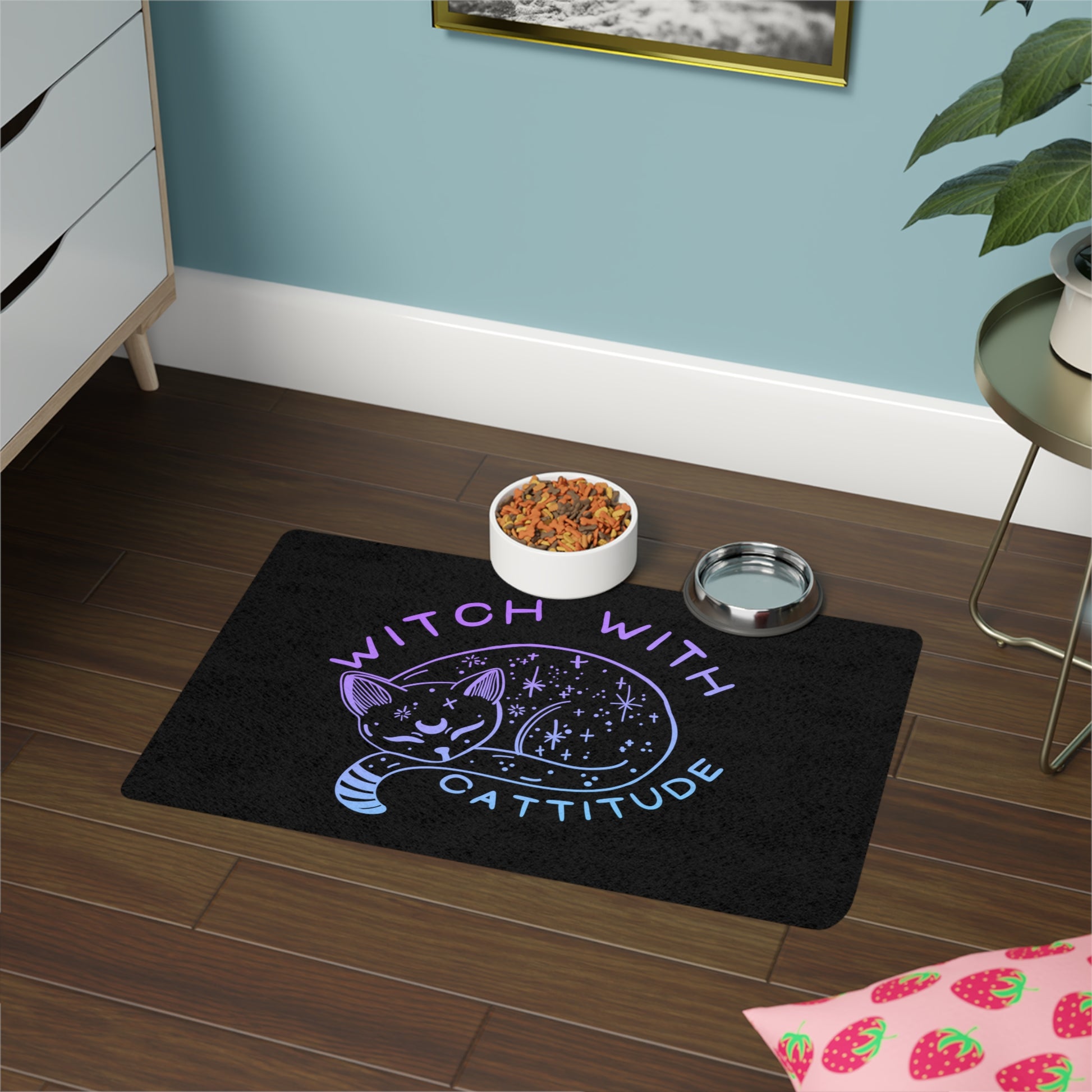 For Cattitude Cat Food Mats, style and function come together to create the perfect place for your cat to dine. The sleek black design is modern and attractive, while helpping to keep food and water off your floor. But the best part of the Catitude Cat Food Mat is that it's easy to clean . So not only will your Catitude Cat Food Mat look great in your home, but it will also make mealtime cleanup a breeze. Created for minimizing mess, this personalized pet food mat is as practical as it is stylish. Made with a non-slip rubber base, this pet feeding mat stays put even when the sassiest cats are having their meal. Each mat comes in a rectangle shape, is thick, and is perfect no matter how picky your familar is.