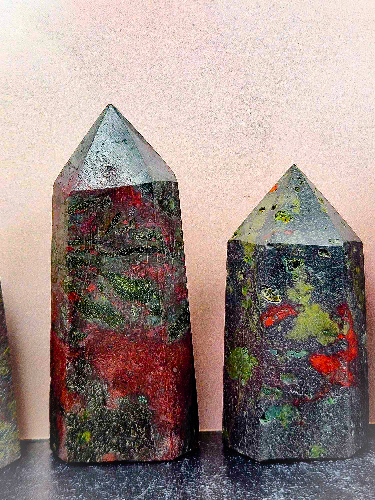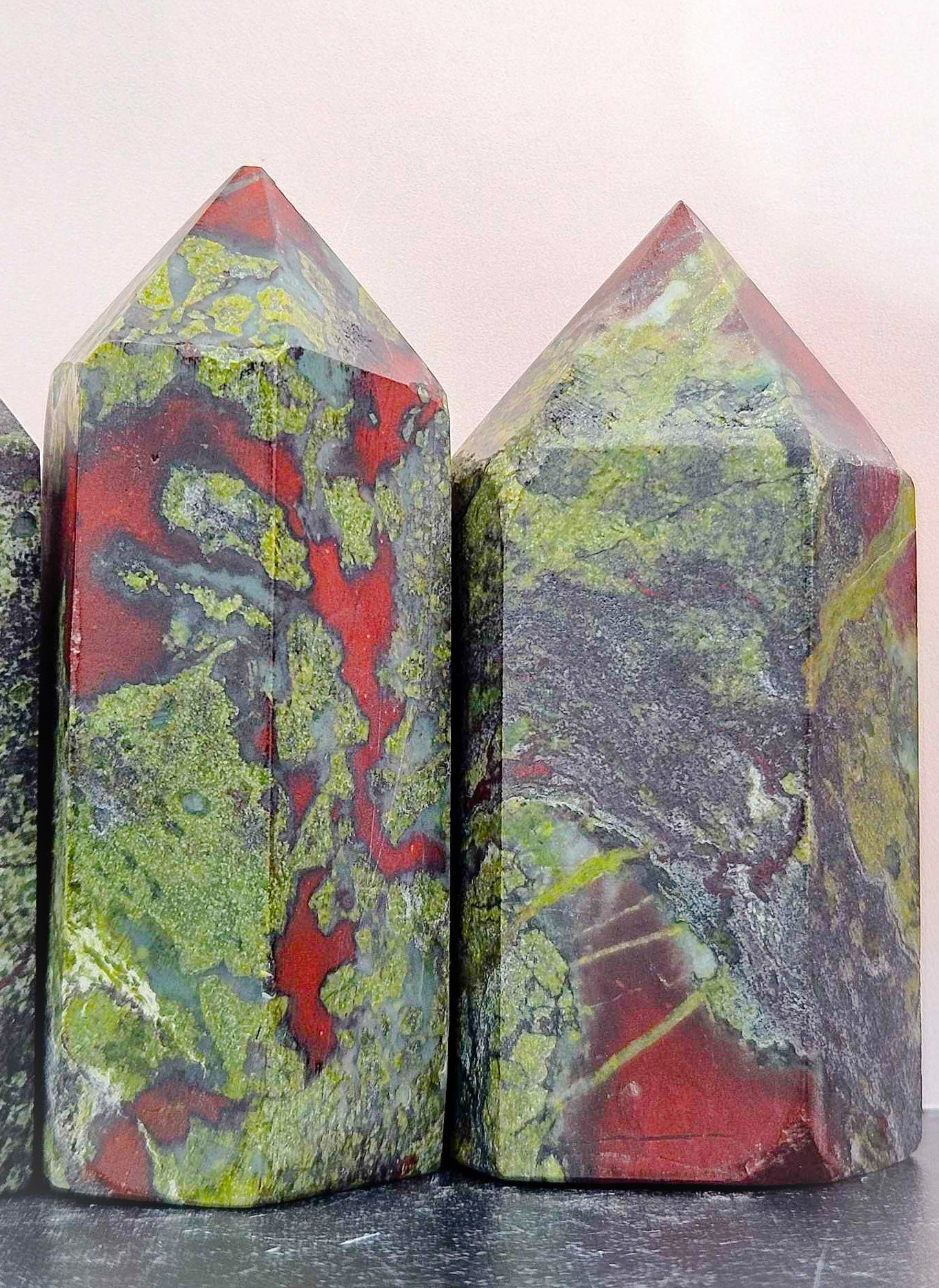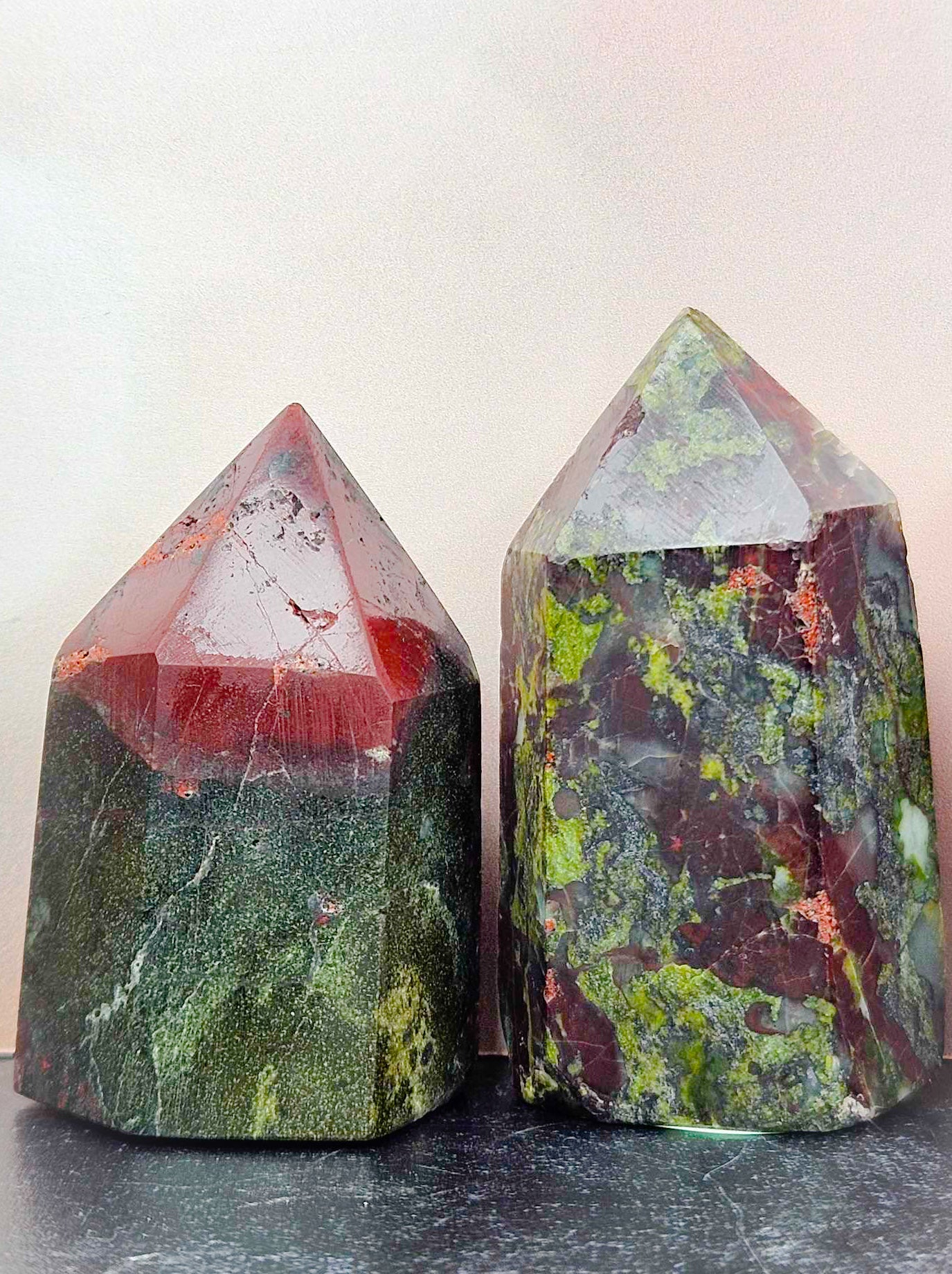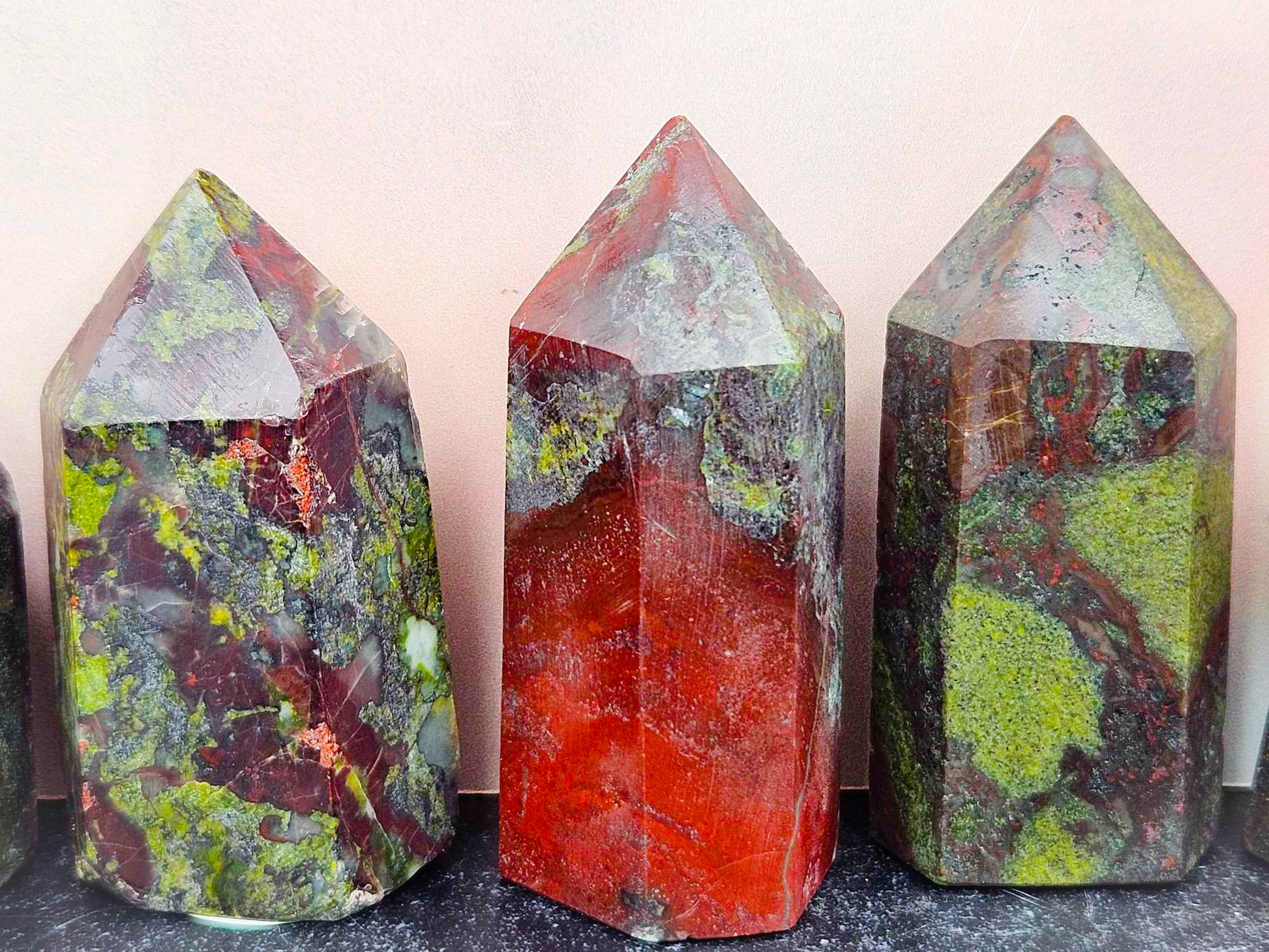 These Red and Green towers are bringing all that festive holiday energy to your home with a little dragoney twist. Dragon’s Blood is one of the most powerful crystals for witchwork that you can find. It encourages bravery, courage, healing, grounding, protection, ferocious energy and a strong sense of power to your spellwork. Dragon’s blood is like an amplifier. It strengthens, it empowers, it emboldens, it amplifies and magnifies. It is all the things and then some. It is that boost you need for your work. If you struggle with self esteem and self worth, this is your crystal point. Write your name and set it under this tower and you will feel yourself become infused with all the confidence of a fierce and beautiful dragon just strutting its stuff through the world. Roar, dragon, roar because you are unstoppable.