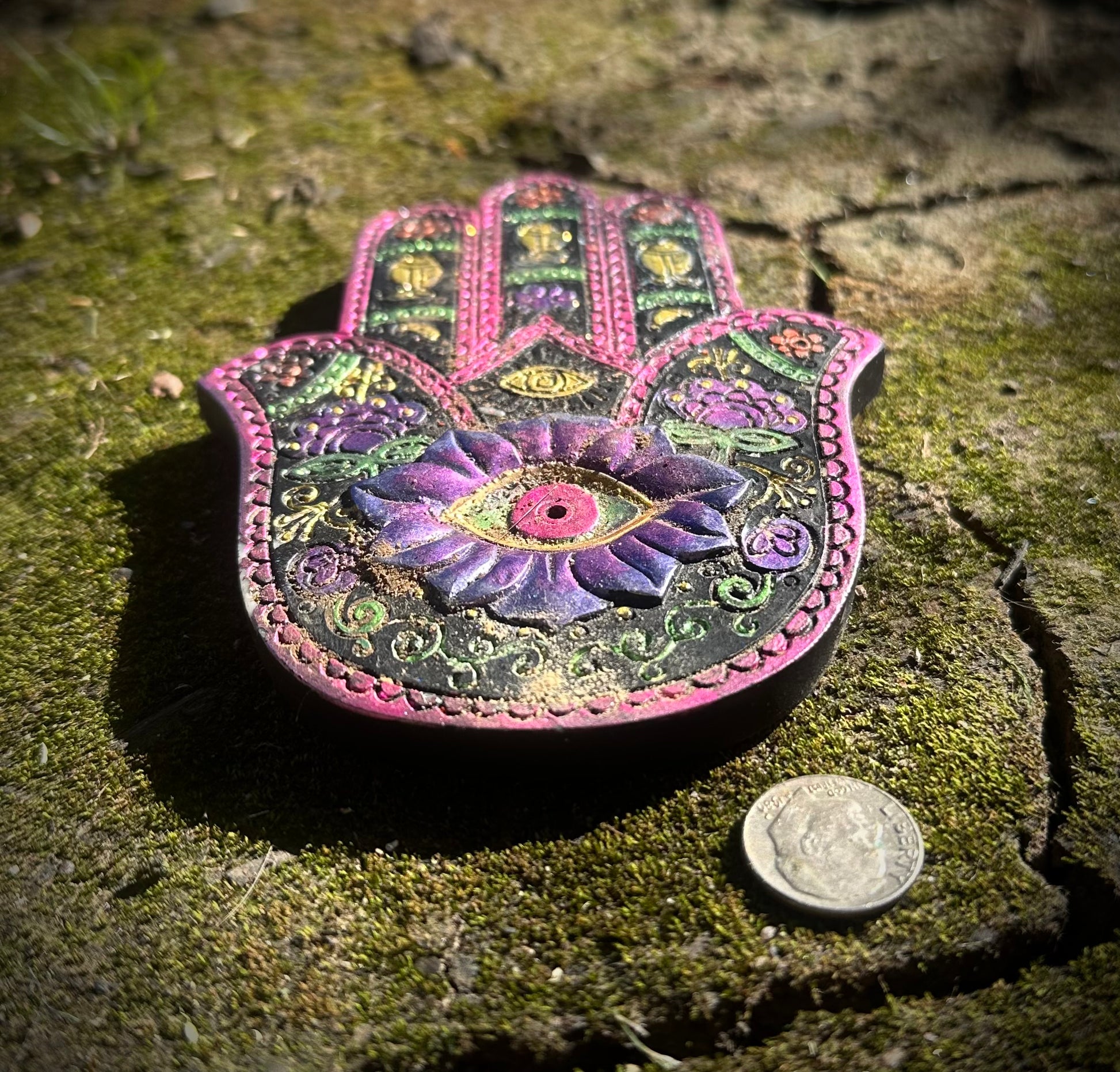 The Hamsa is a favorite of mine because the color palette is so pretty. It will bring protection and divine favor.