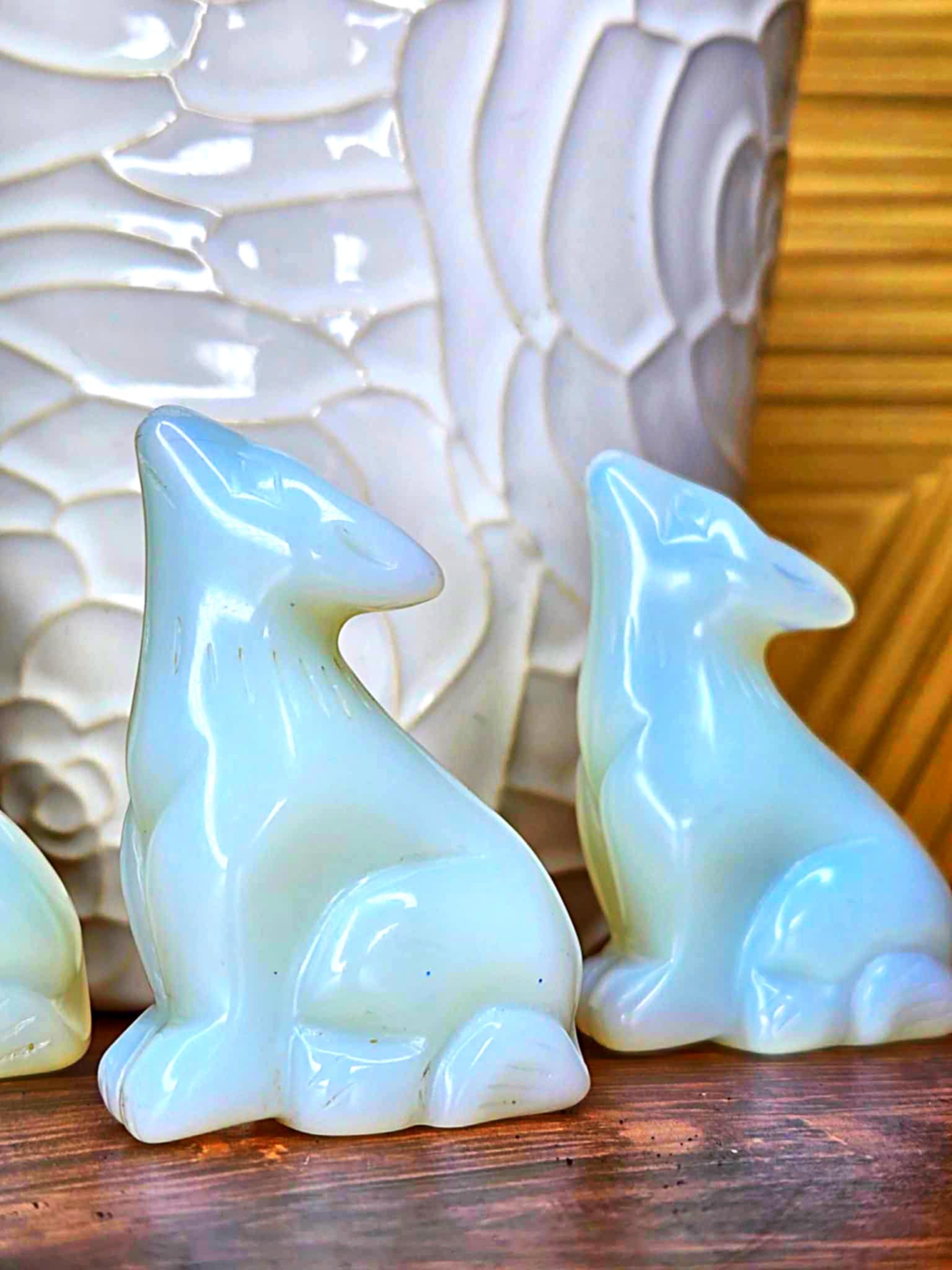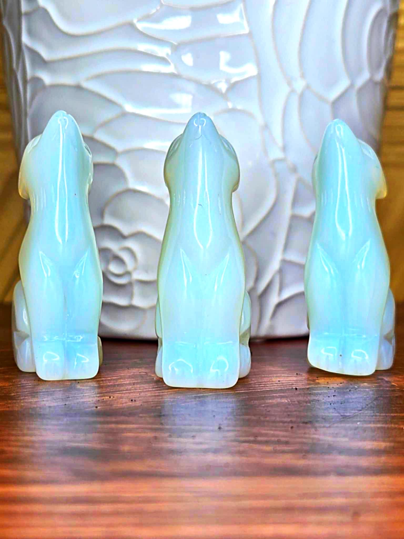 Our little wolf loves here are howling with joy over the fact that they get to come live with you and feast upon any unwanted energy or issues that may befall you. Opalite is an iridescent crystal with psychic development properties as well as the capacity to calm mood swings, stress, anger and challenges. They elevate you to a higher place of perspective and offer you insight from that place. And truly, who doesn't want a wolf on your spiritual team?