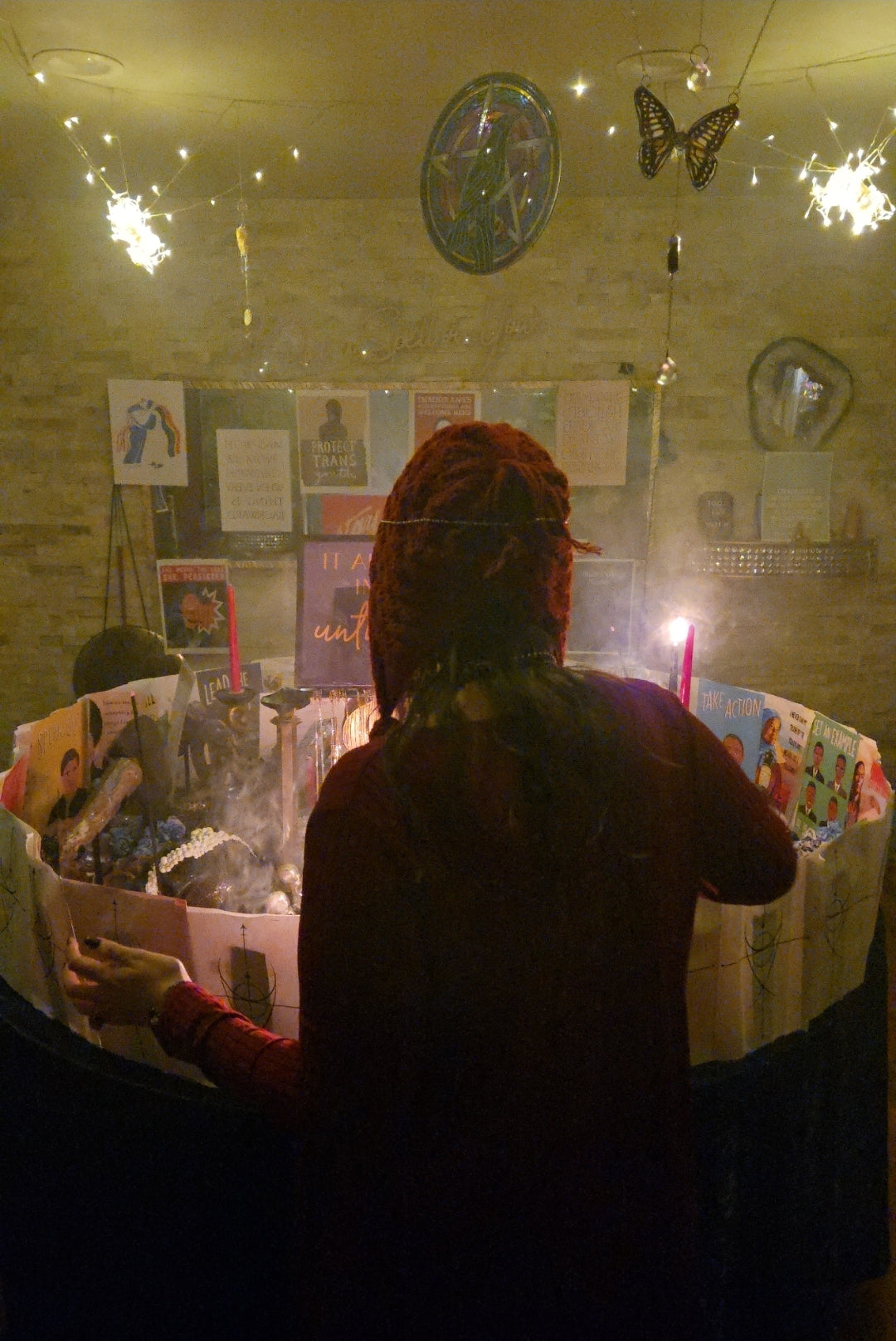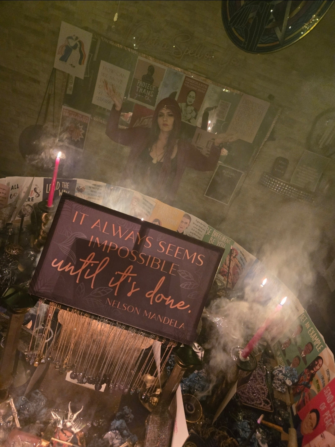 This wall is hella infused with magic and energy. This is the literal spell table wall of activism and magic that held the energy for the Protect and Defend spell. In a very real way this IS the protect and defend spell. Individual activists and aligned people from history adorn these images. Their energy contributed to creating this shield. The back of each one contains a protection sigil.