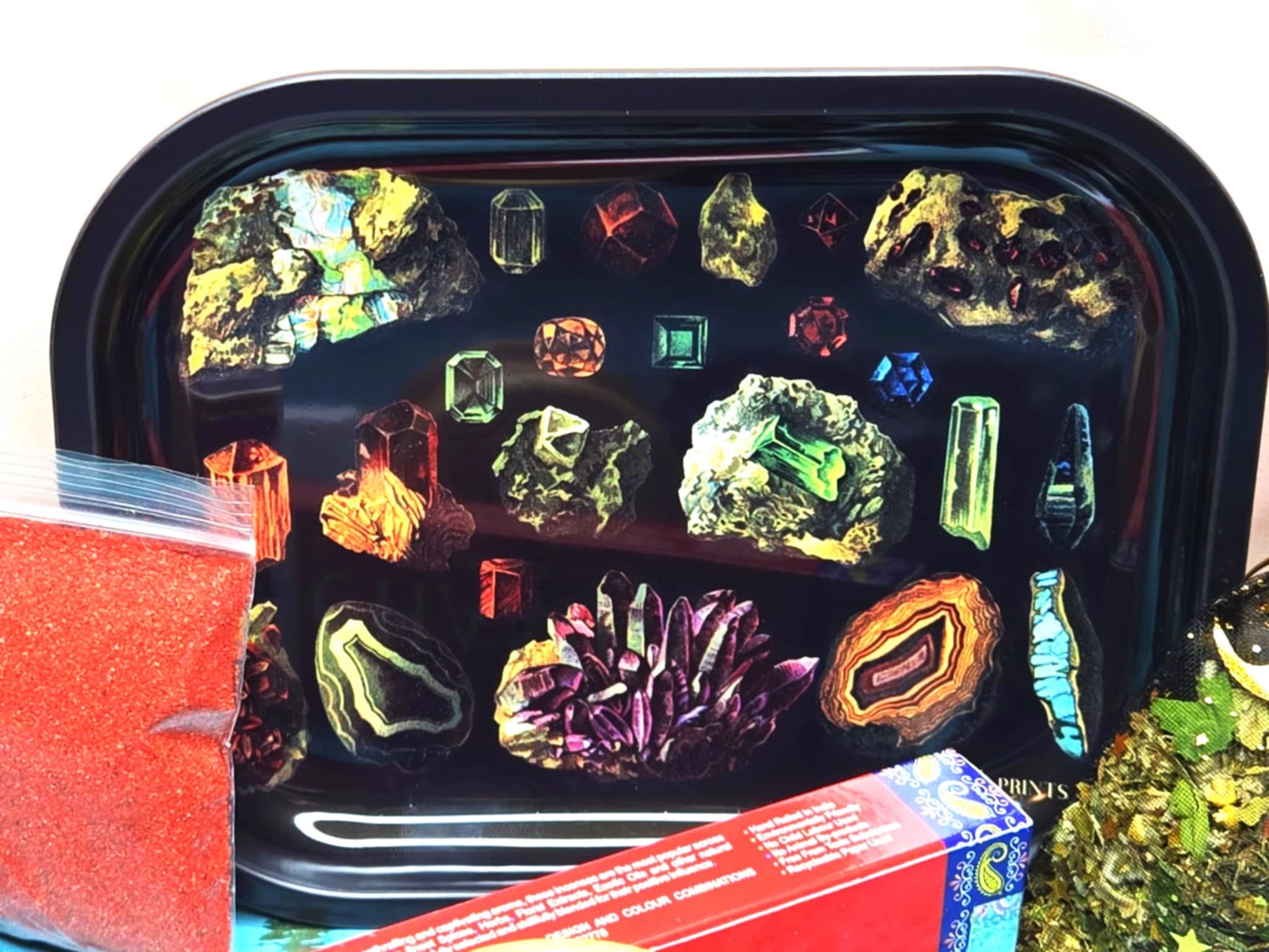 🌬Rolling Tray Adorned with Crystals: how freaking pretty is this? You could even use this to dress a candle by rolling the candle on it.