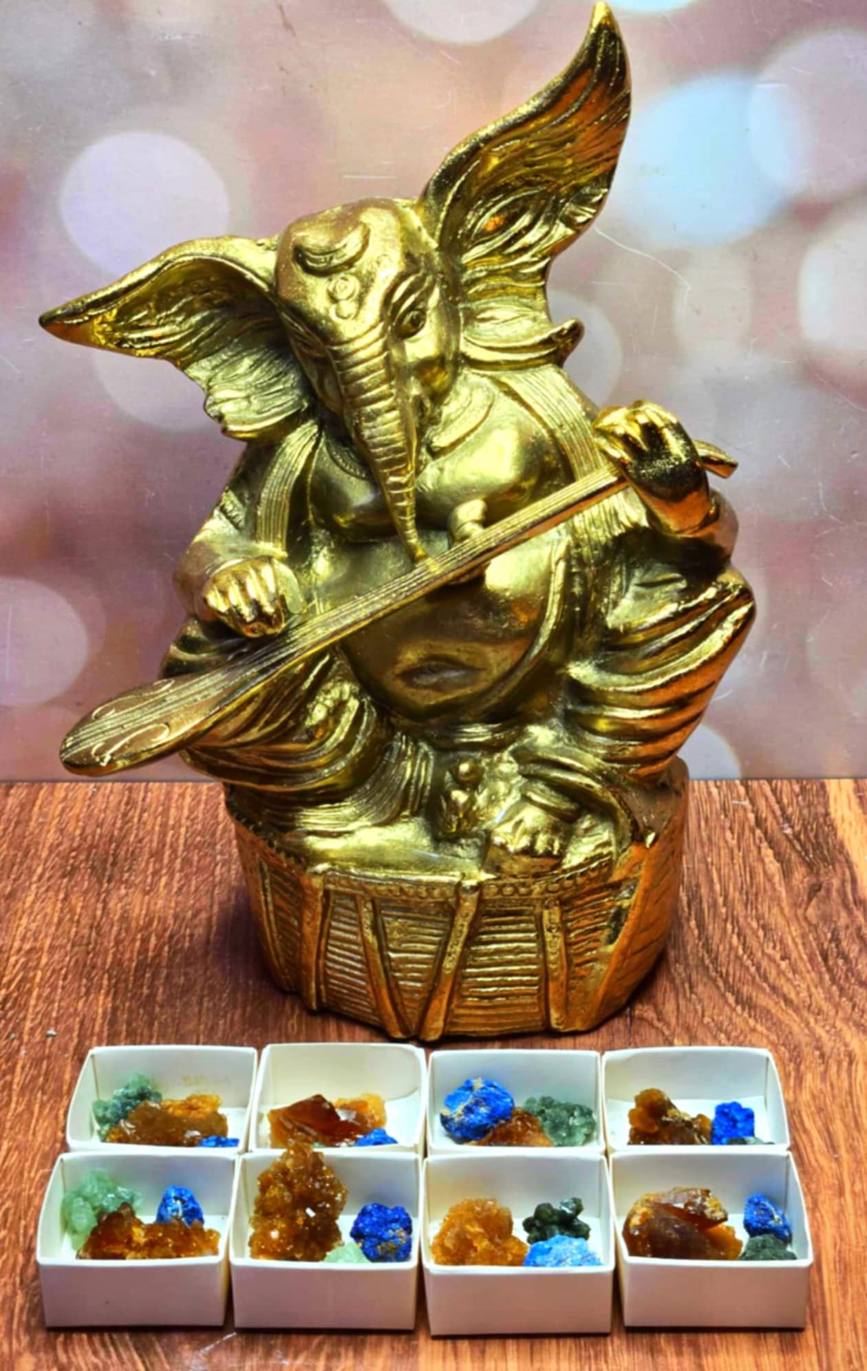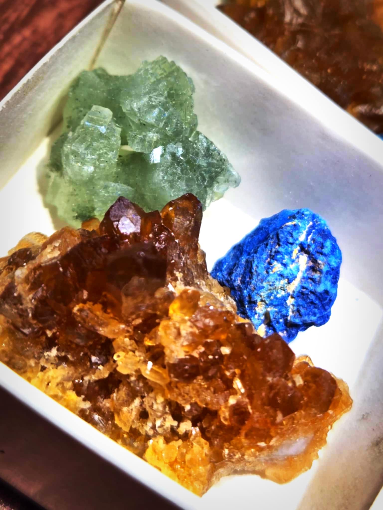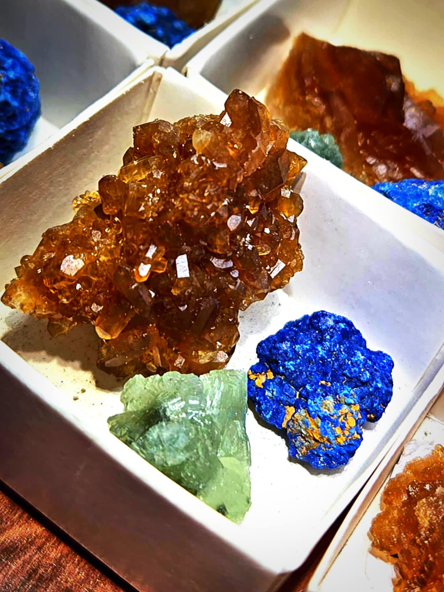 This bundle of these tiny specimen pieces is out of this world and has been hand curated by us. We have a combination of authentic Moroccan Natural Citrine, Azurite Berries and Prehnite Clusters. Each of these on their own in bigger sizes would be out of this world expensive but grouped together in these smaller sized showpieces we can make them accessible to you. Azurite allows you to align with your intuition, your higher self, your spiritual path and it brings such an abundance of good energy. Citrine is the perfect crystal for a Road Opening spell and it infuses everything with the most positive, happy and lucky energy there is. Prehnite brings you inner calm, peace, and is said to have psychic and prophetic properties. This combination is so great for clearing the path to a deep inner knowing stacked with motivation to move forward. Specimen pieces are designed to be tiny little pieces of magic, each one is like a little world and they deserve to be seen, appreciated and valued.