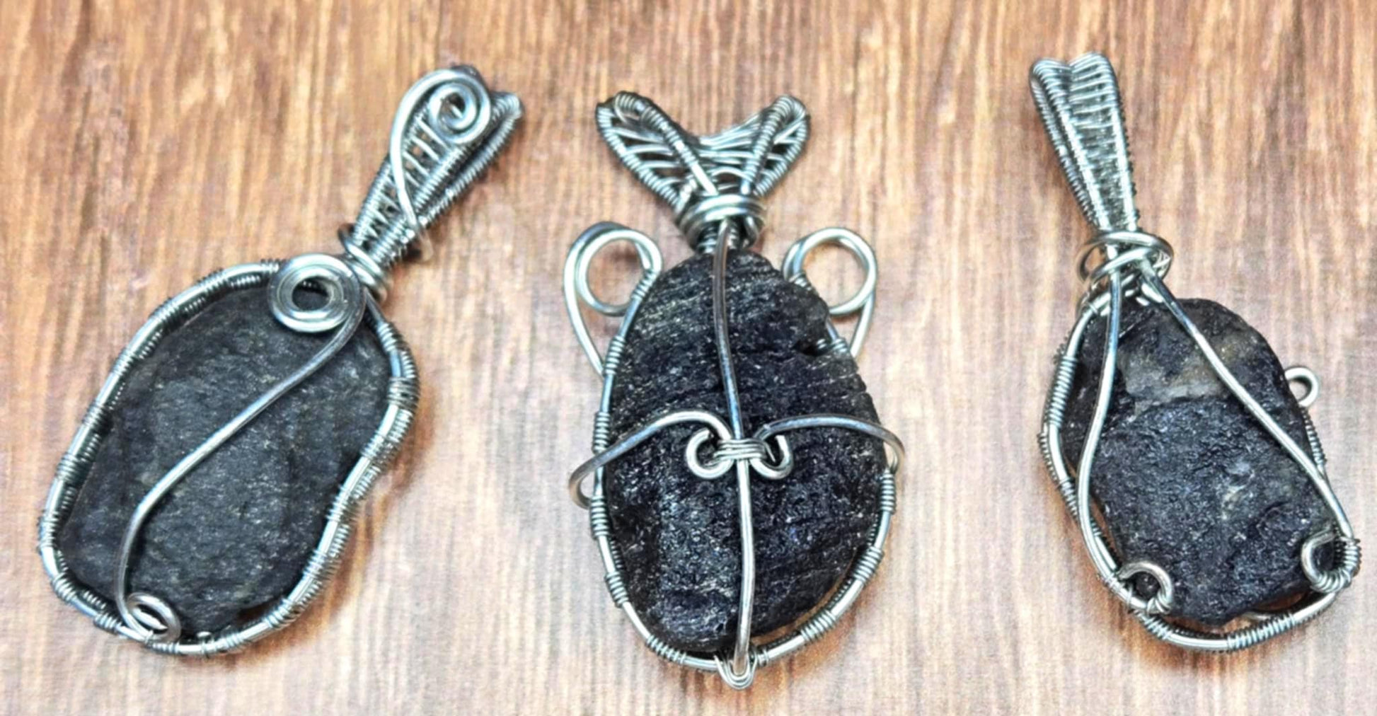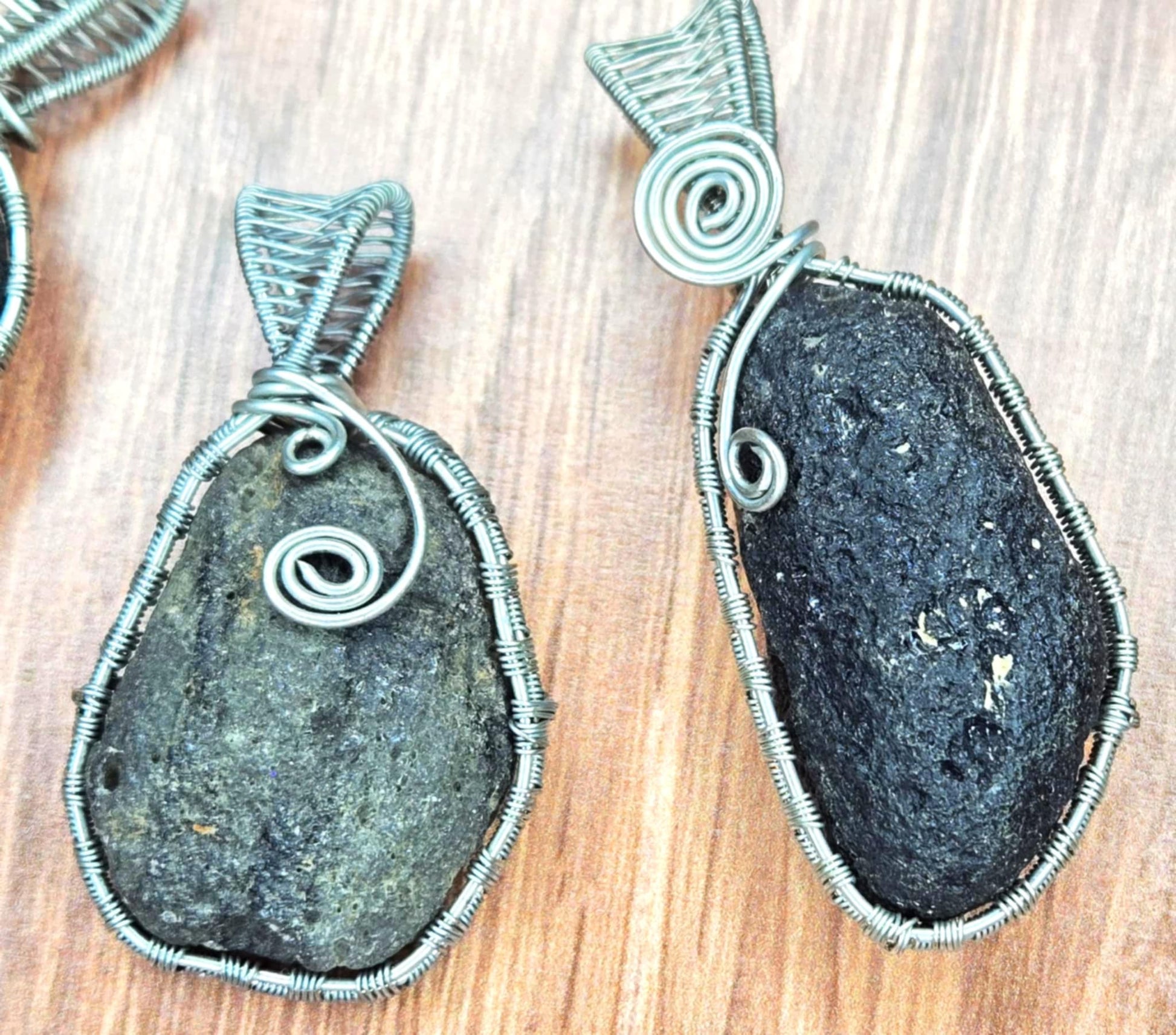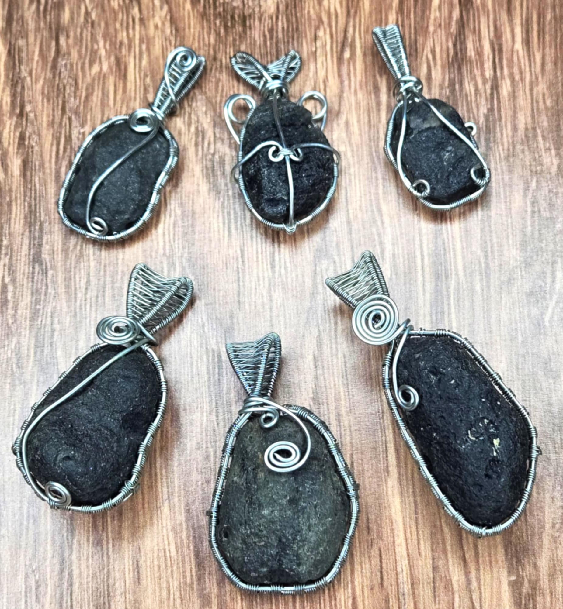 yep we've got Tektites! A Tektite is a piece of a sky rock that came on down to join us here on earth some number of millenia ago. Tektites bring about transformation and they offer you completely different perspectives than what you normally hold. They have a very unique energy and they're eager to work with you. These are different from Moldavite and carry their own flavor of manifestation energy. If you're shooting for the stars with some big dreams ahead this might be the pendant for you.